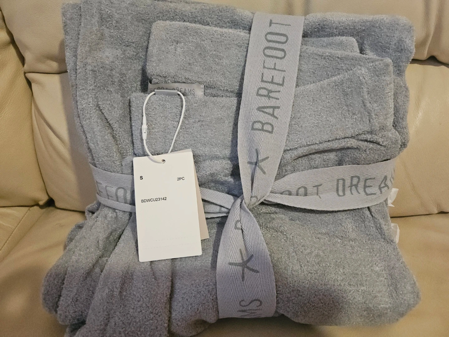 This is a Barefoot Dreams 2-piece lounge set. It's a size small and comes in a grey heather color. Made from incredibly soft material for ultimate comfort!