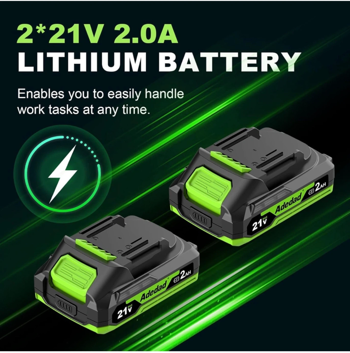 Adedad 21V Cordless Leaf Blower with 2 Batteries