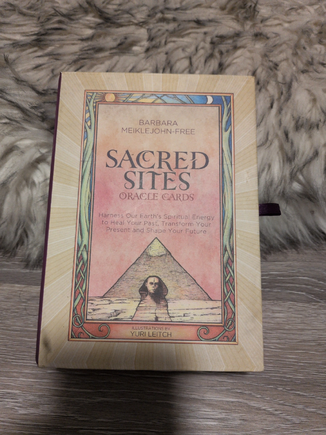 Sacred Sites Oracle Cards by Barbara Meiklejohn-Free and illustrations by Yuri Leitch. Harness your Earth's Spiritual Energy to Heal Your Past, Transform Your Present and Shape Your Future! Includes 53 cards capturing the energy of sacred places all over the world, and a detailed guidebook on how to question the Oracle and use it to connect with the sites