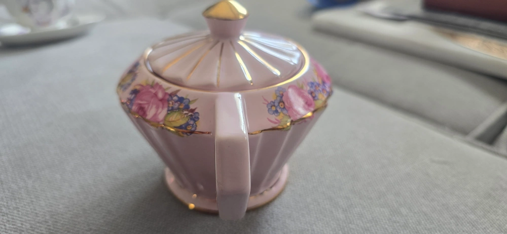 75Selling a lovely Sadler sugar bowl, made in England. It features a beautiful floral design with pink roses and blue forget-me-nots, accented with gold trim. The bowl is in great condition and ready to add a touch of elegance to your tea set. Asking $45 or Nearest offer. Payment can be made via PayPal, etransfer or cash upon pick up in Keswick, ON.