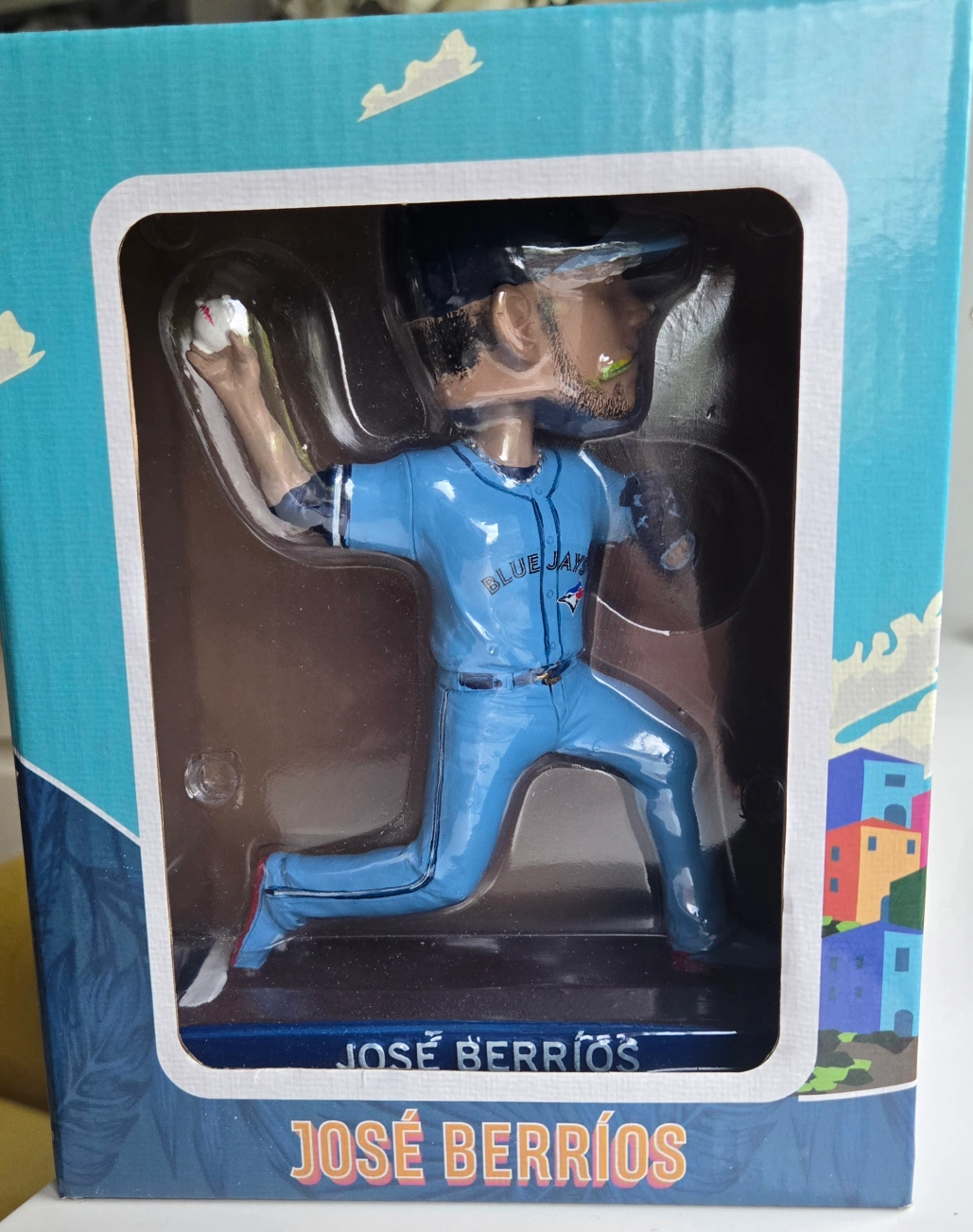 New in box, never opened. Features José Berríos in a pitching pose. Box depicts artwork of a colorful cityscape.
