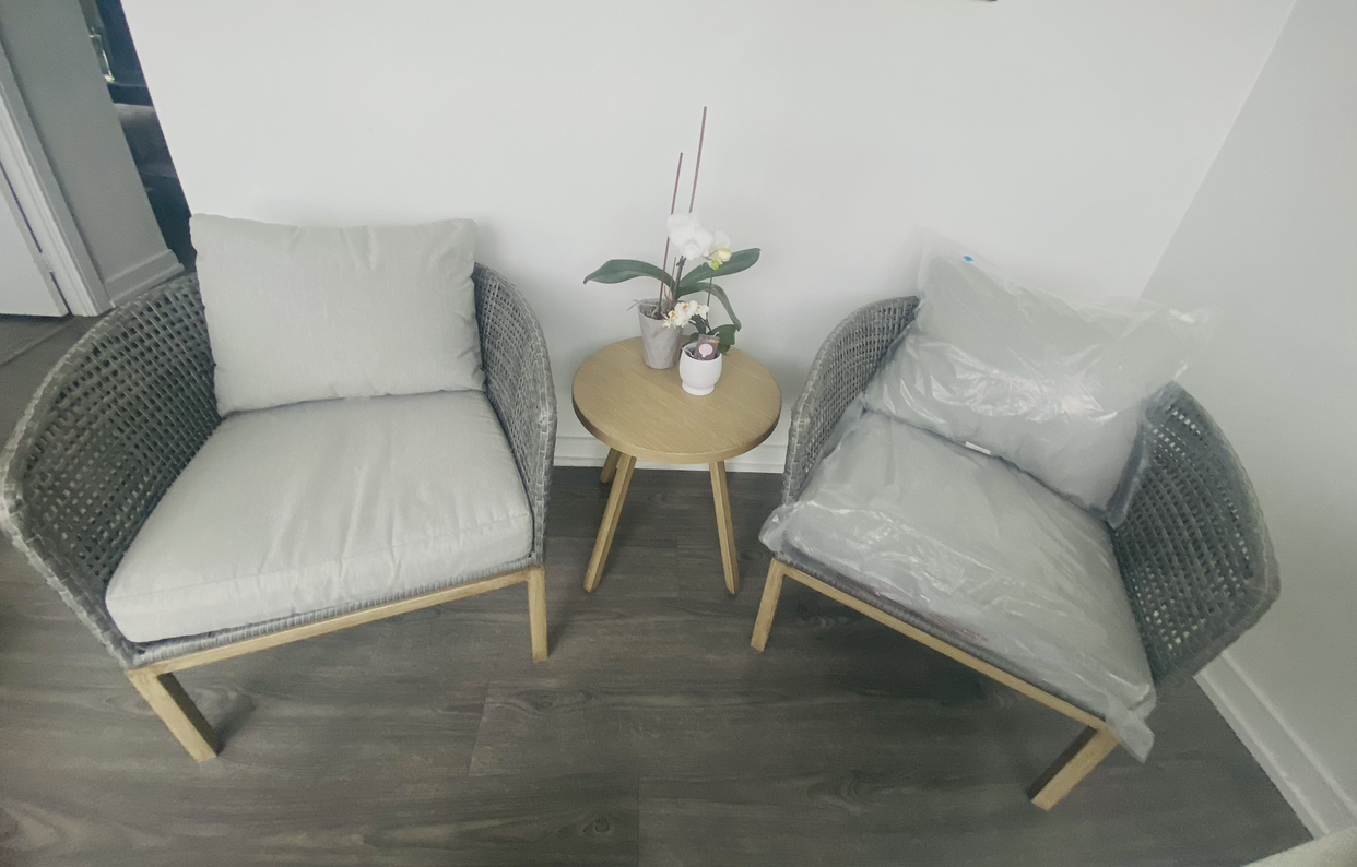Patio / Balcony Set - 2 Chairs & Table (Brand New & Assembled)