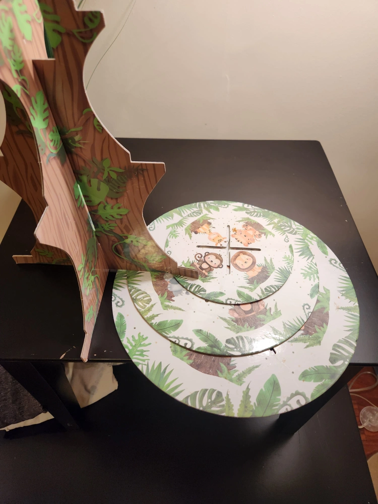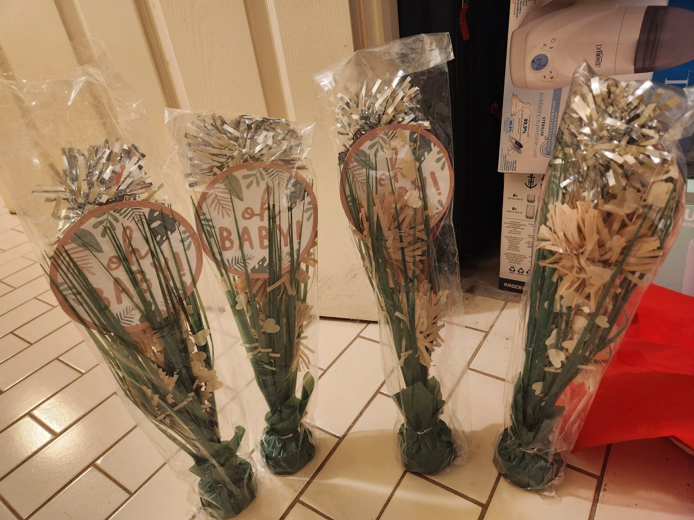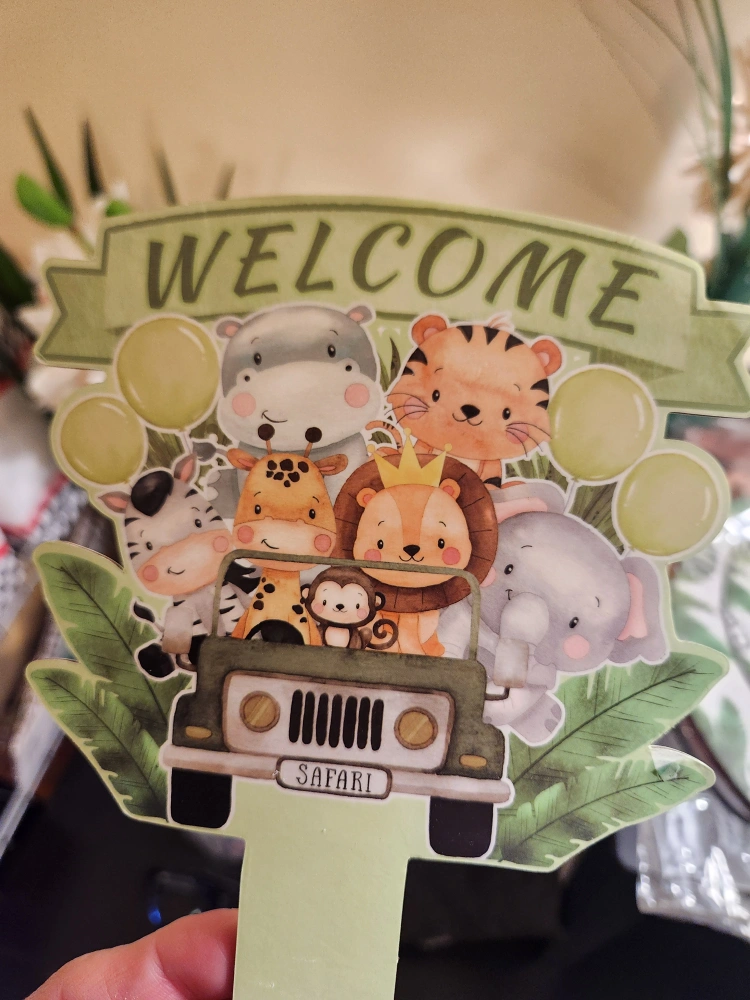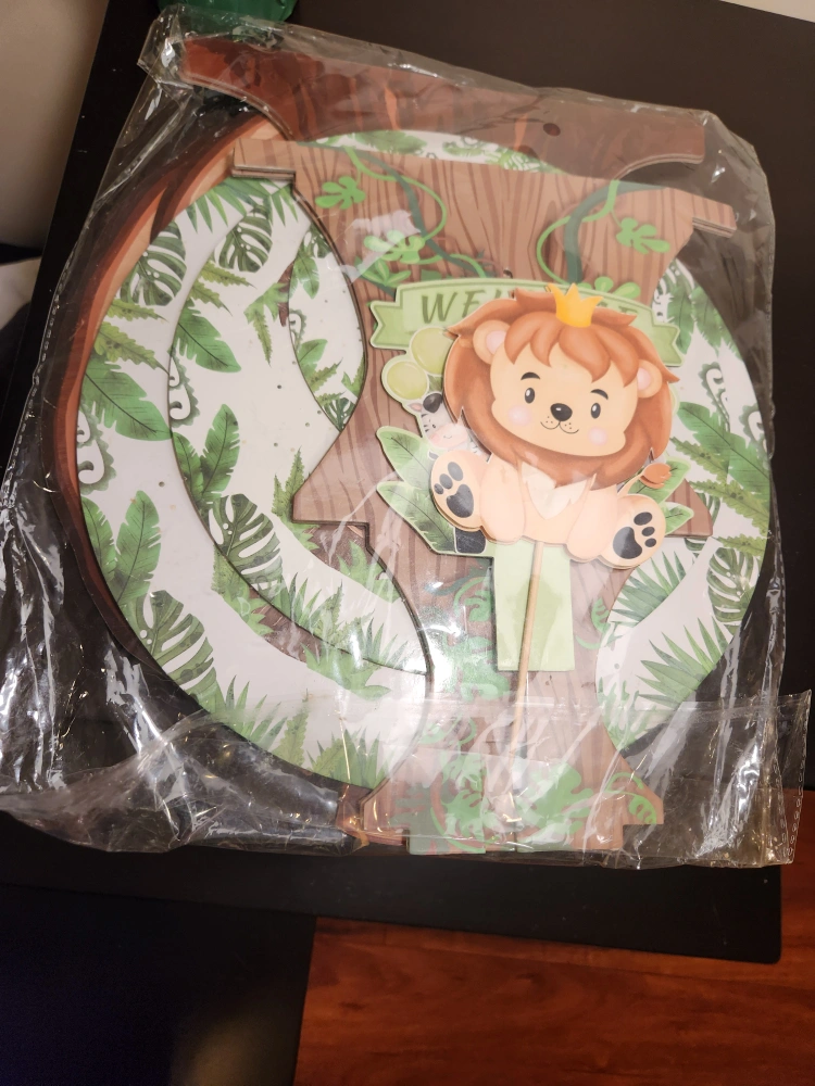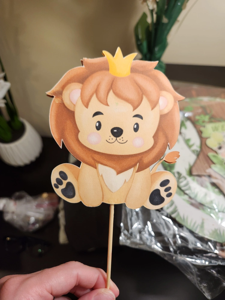 Safari decos for shower or birthday, mint conditions, plates cups and toothpicks are still new. What's included: *40+ Monstera long toothpicks *20+ oh baby cups and plat plates * one 3 tier tree stump paper stand *one 3 tier safari stump paper stand *5 oh baby safari centre pieces *1 small welcome cardboard sign for cake or table *1 cardboard lion deco for cake or dessert.