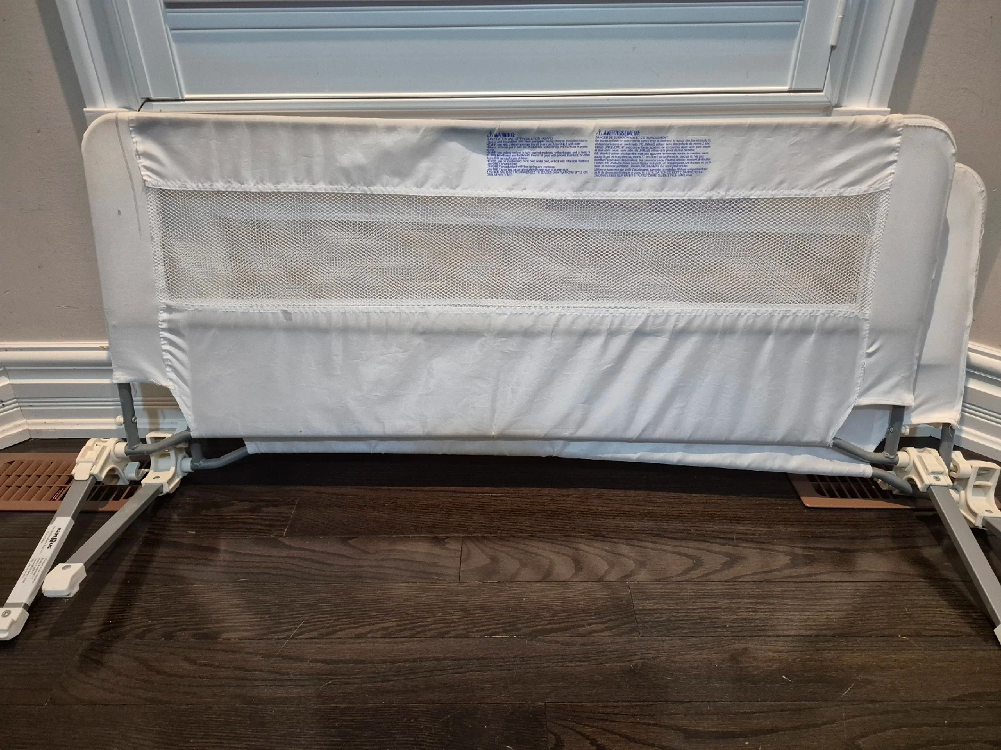 10Selling a 2 piece set of Safety 1st bed rail in white. It's in great condition and perfect for keeping your little one safe and sound while they sleep. Easy to install and provides peace of mind