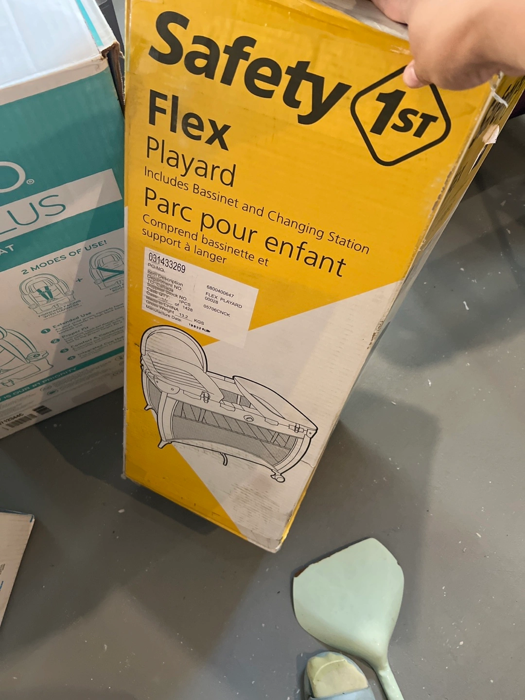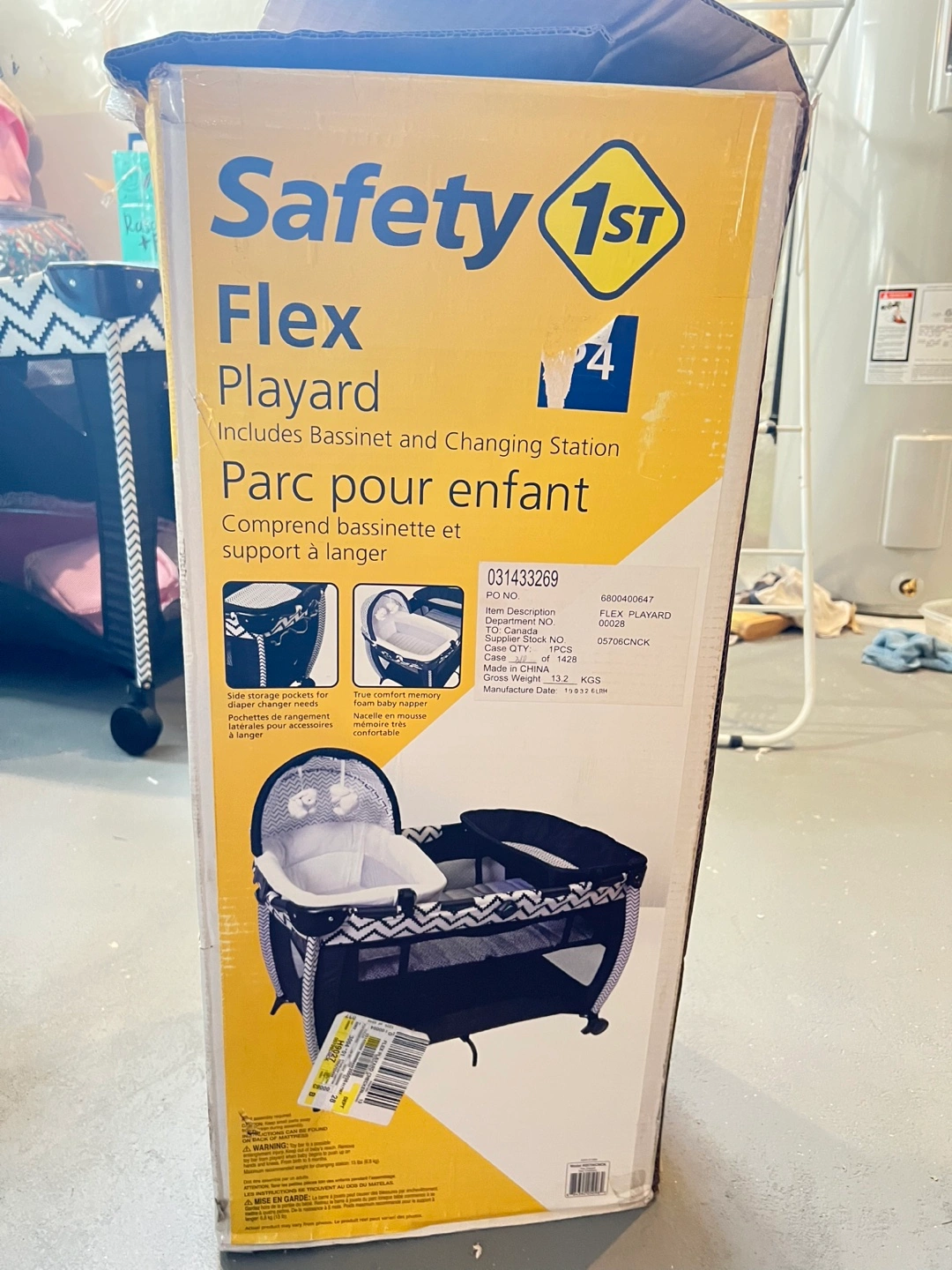 Safety 1st Flex Playard. Includes bassinet and changing station. Side storage pockets. True comfort memory foam baby napper.