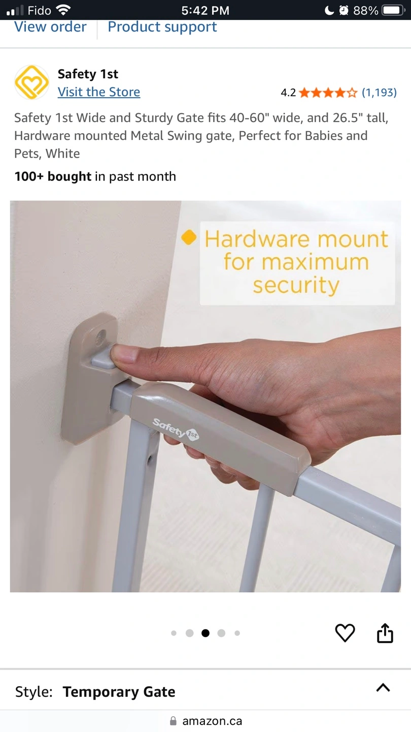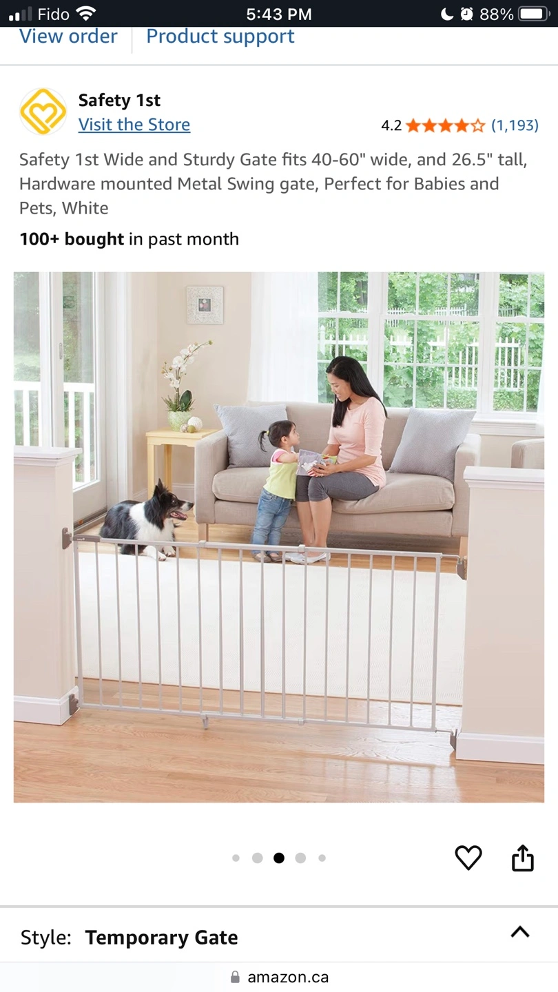 Selling a Safety 1st Wide and Sturdy Gate! It's perfect for keeping babies and pets safe. It fits openings 40-60" wide and is 26.5" tall. This hardware-mounted metal swing gate is in great condition and ready for a new home!