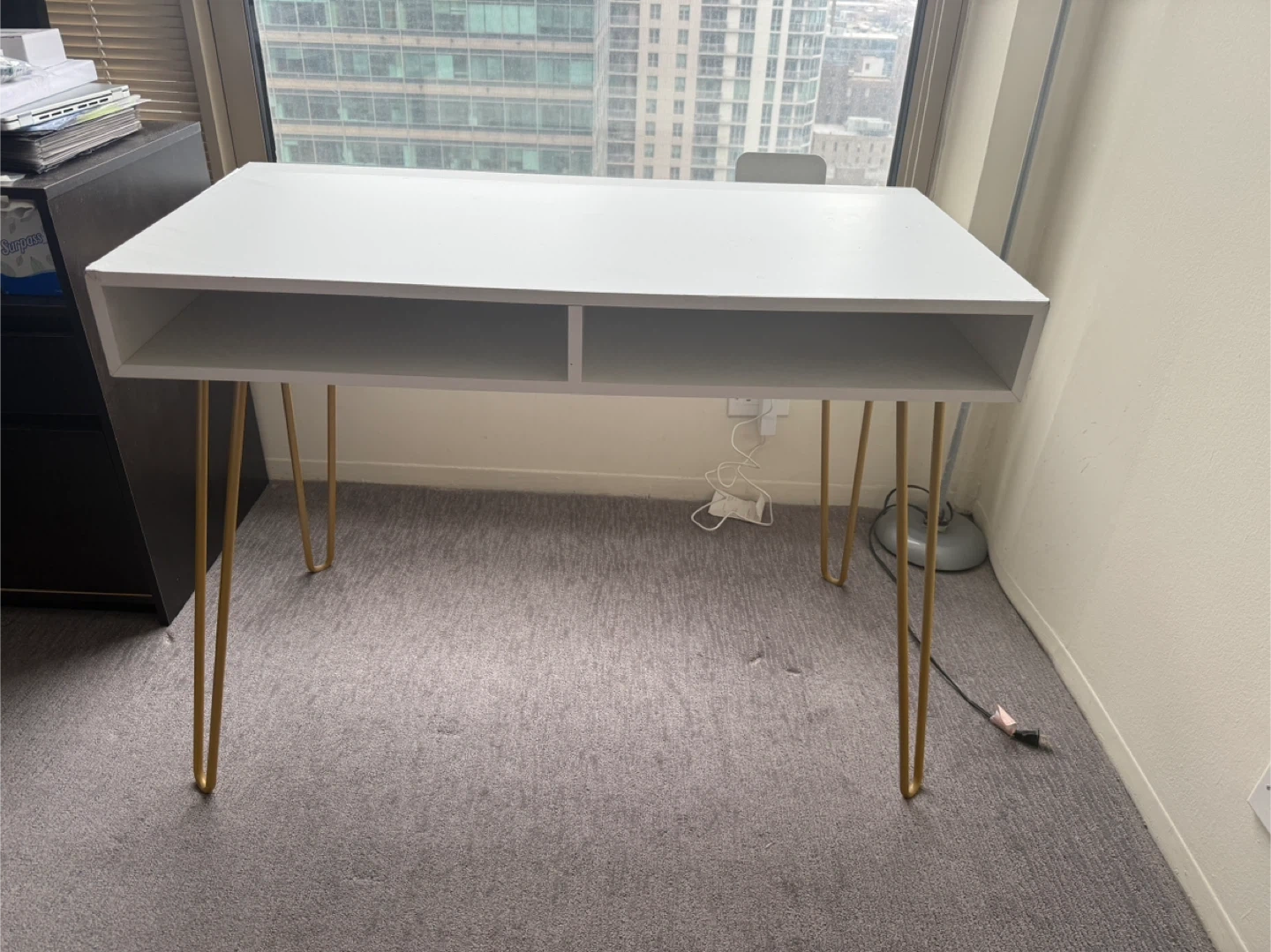White Desk with Gold Hairpin Legs