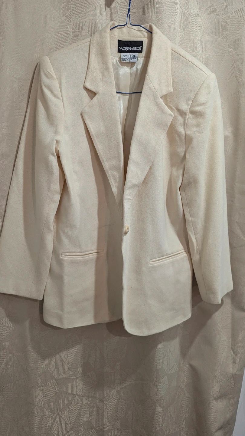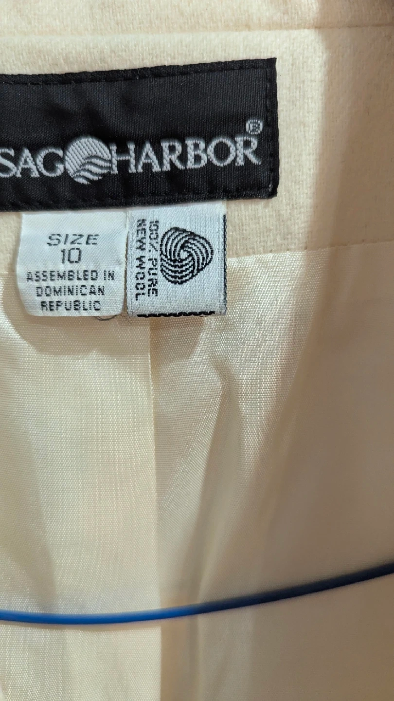 10Classic Sag Harbor blazer in a beautiful cream colour. It's a size 10 and made of 100% pure wool. Perfect for adding a touch of sophistication to any outfit!