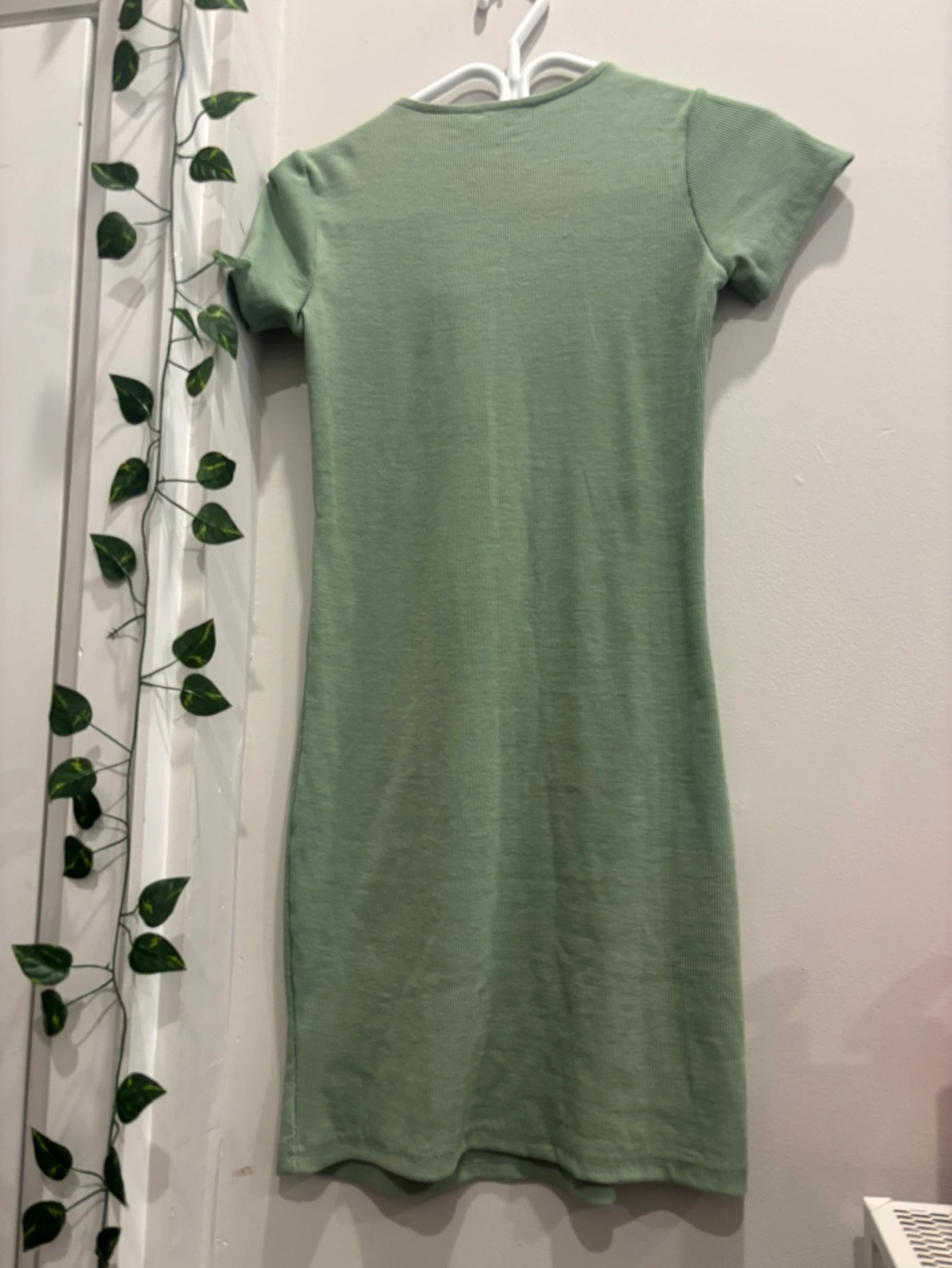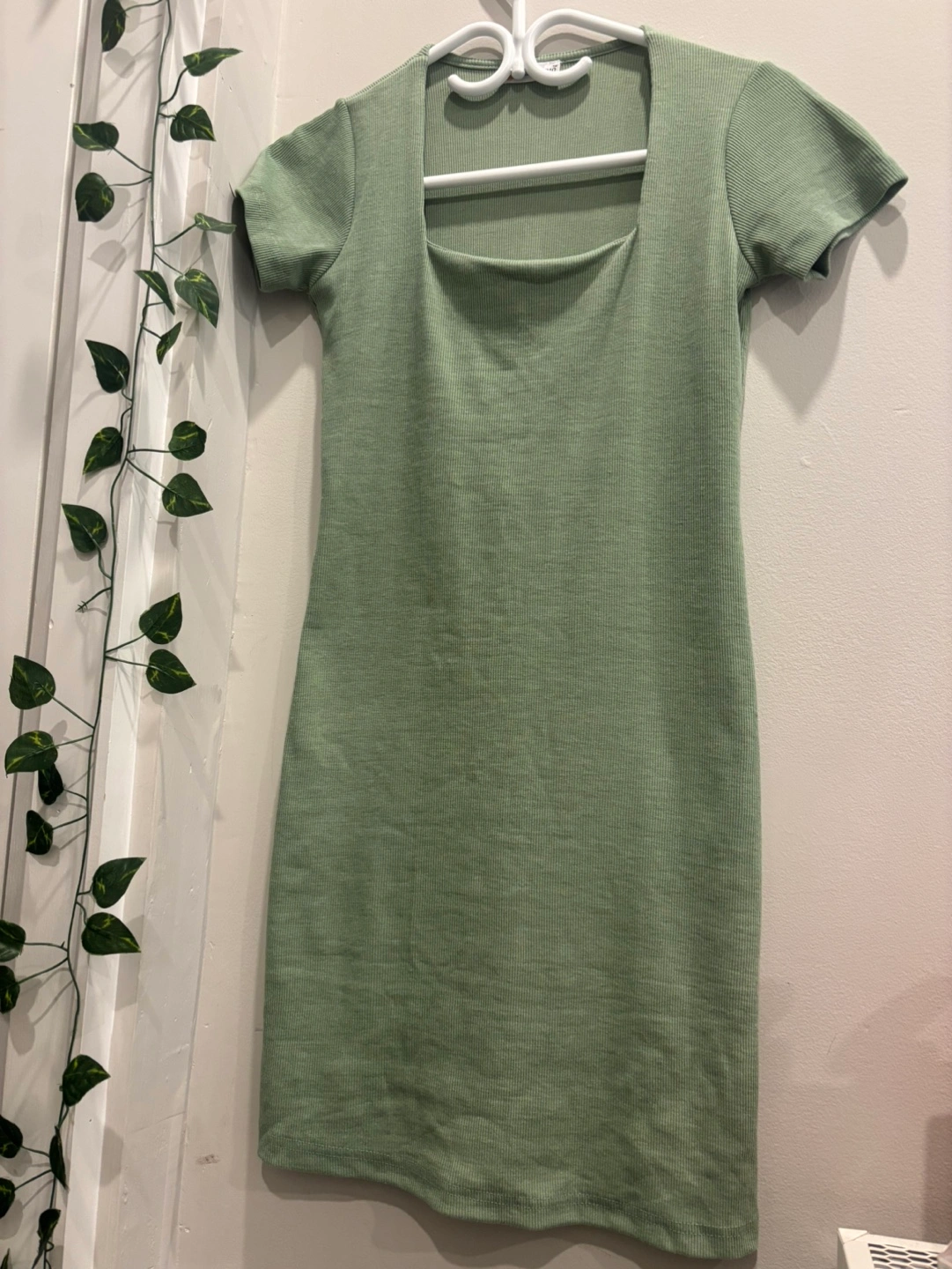 Open to trades as well. Cute sage green mini dress. Perfect for a night out or casual wear. Never worn. Bought on vacation but i don’t like bodycon