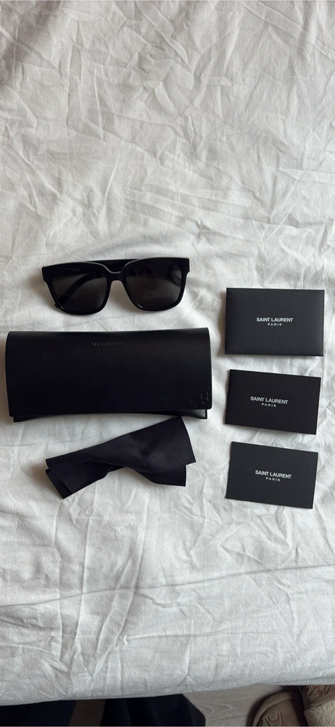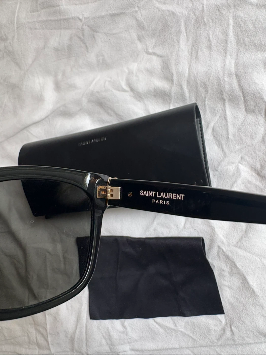 Selling a pair of authentic SAINT LAURENT YSL Black SL M40 Sunglasses. They come with the original case, cleaning cloth, and cards. These sunglasses are in great condition and ready for a new owner! Retails for $525 CAD Has some scratches due to wear. The corner of the carry case has some damage (see pics) Purchased on SSENSE ~3 years ago