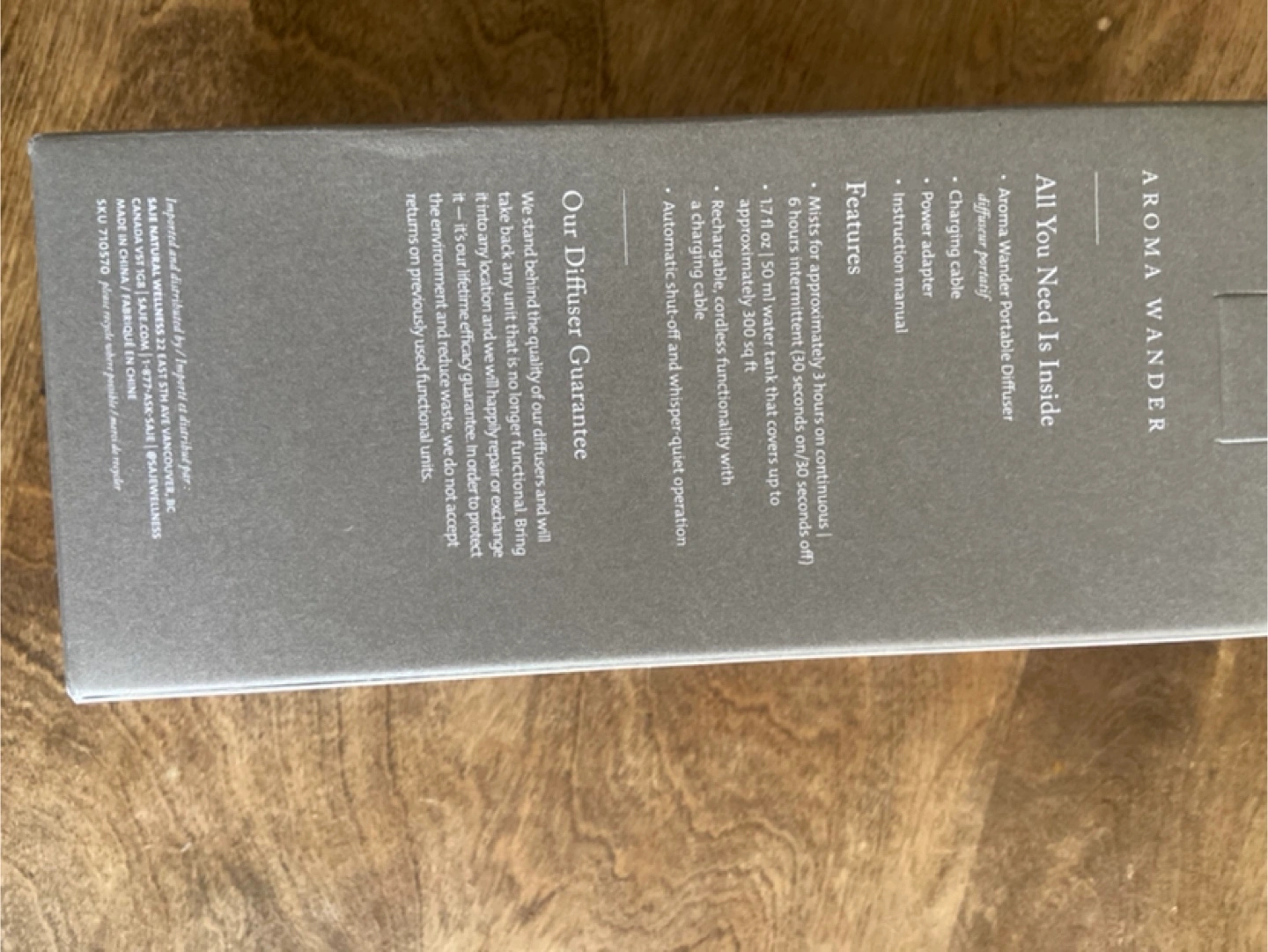 Brand new in box, SAJE Aroma Wander Diffuser. Can work in car, great for travel and hotel rooms as it’s compact. Charcoal black colour. Never opened. See photos for website description and for photos of actual packaging. Giftable item. Purchased for $66 + tax, give me your best offer :)
