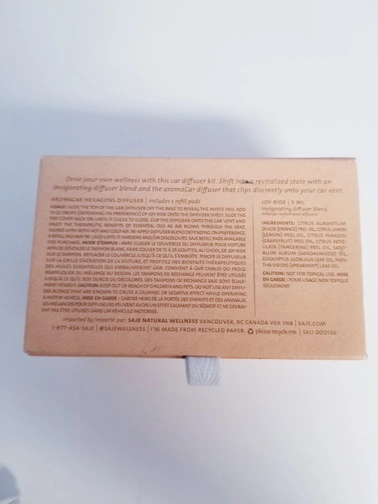 includes SAJE box, 1 plug in diffuser and 5 + 5 bonus (total 10) diffuser pads in Joy ride scent