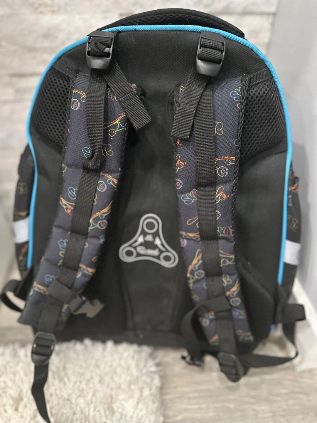 Black SKATE Backpack with Skateboard Design