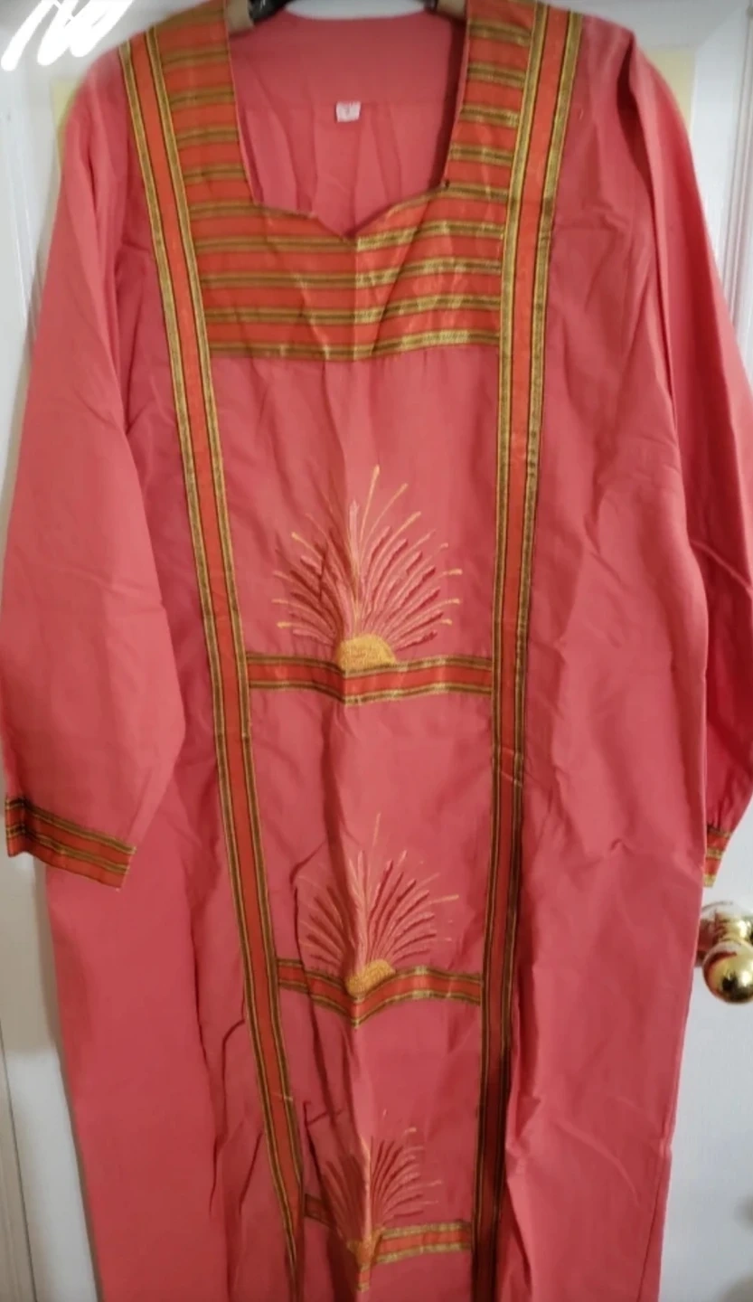Salmon Pink Embroidered Long-Sleeve galabeya Size m