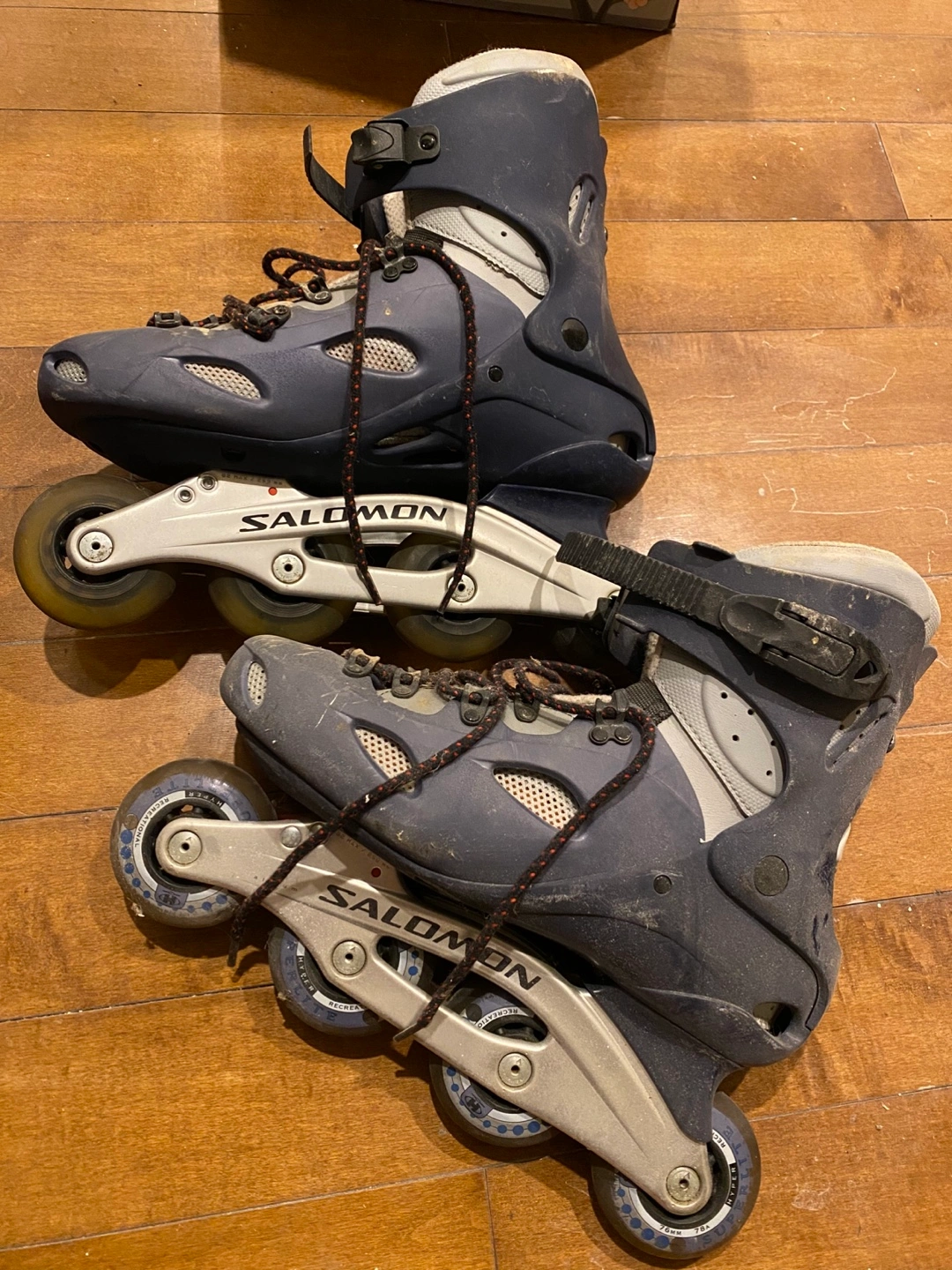 53Used Salomon inline skates. Good condition. Adjustable closures. Four wheels per skate. Ready to roll!