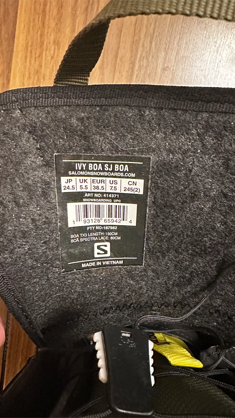 5The venerable Ivy keeps getting better and better. In its latest incarnation, the Salomon Ivy Boa SJ Snowboard Boots get a quick and convenient dual Boa® closure system with STR8JKT harness around the liner for vastly improved heel hold. Built as a medium-flexing freestyle boot, the Ivy Boa SJ is actually extremely versatile and thrives on the open mountain as well. Product Details Flex Medium Flex – Medium Flex is adapted to riders that want to feel good on all terrain types, for all riding styles. Fit All Day Comfort – Wraps your foot in a soft welcoming hold that delivers instant and long lasting comfort. Featuring an easy-glide patch and Ultralon multidensity foams. Boa® STR8JKT – This inner heel harness works like a 3 point seat belt for your heels and is activated by the Boa® fit system. Liner Custom Fit – Heat moldable multi-density foams strategically placed in the sensitive areas of the foot, shin, ankle, and heel. Lacing System Boa® Lacing System – Easy and quick Boa® lacing - tightens with the flick of your wrist. Footbed Ortholite C2 Footbed – A dual density insole that molds to your foot for all day comfort. Sole Feather Outsole – EVA and rubber compound lightweight outsole that delivers cushy comfort and smooth landings.