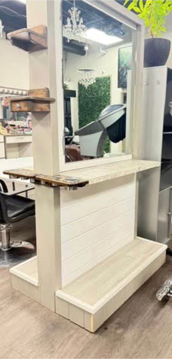 10Selling a custom made Hair Stylist double-sided station and stylist chairs. The station is equipped with outlets and high amp wires for multiple equipments. It is made of hardwood and is quite heavy. I am upgrading the salon setup so don’t need it anymore. Station - $280 Grey Chair - $200 2 Black chairs - $200/each I can negotiate if you buy all of them. Station Measurements : 87 x 32 x 44 Located in Kinniburgh, Chestermere