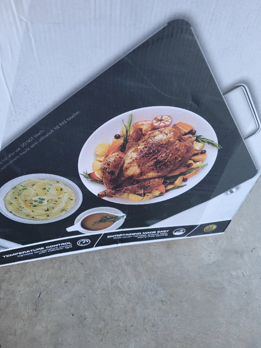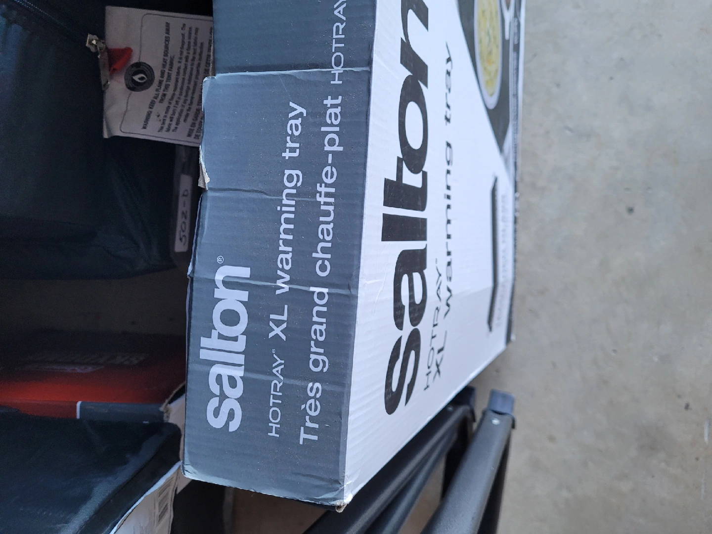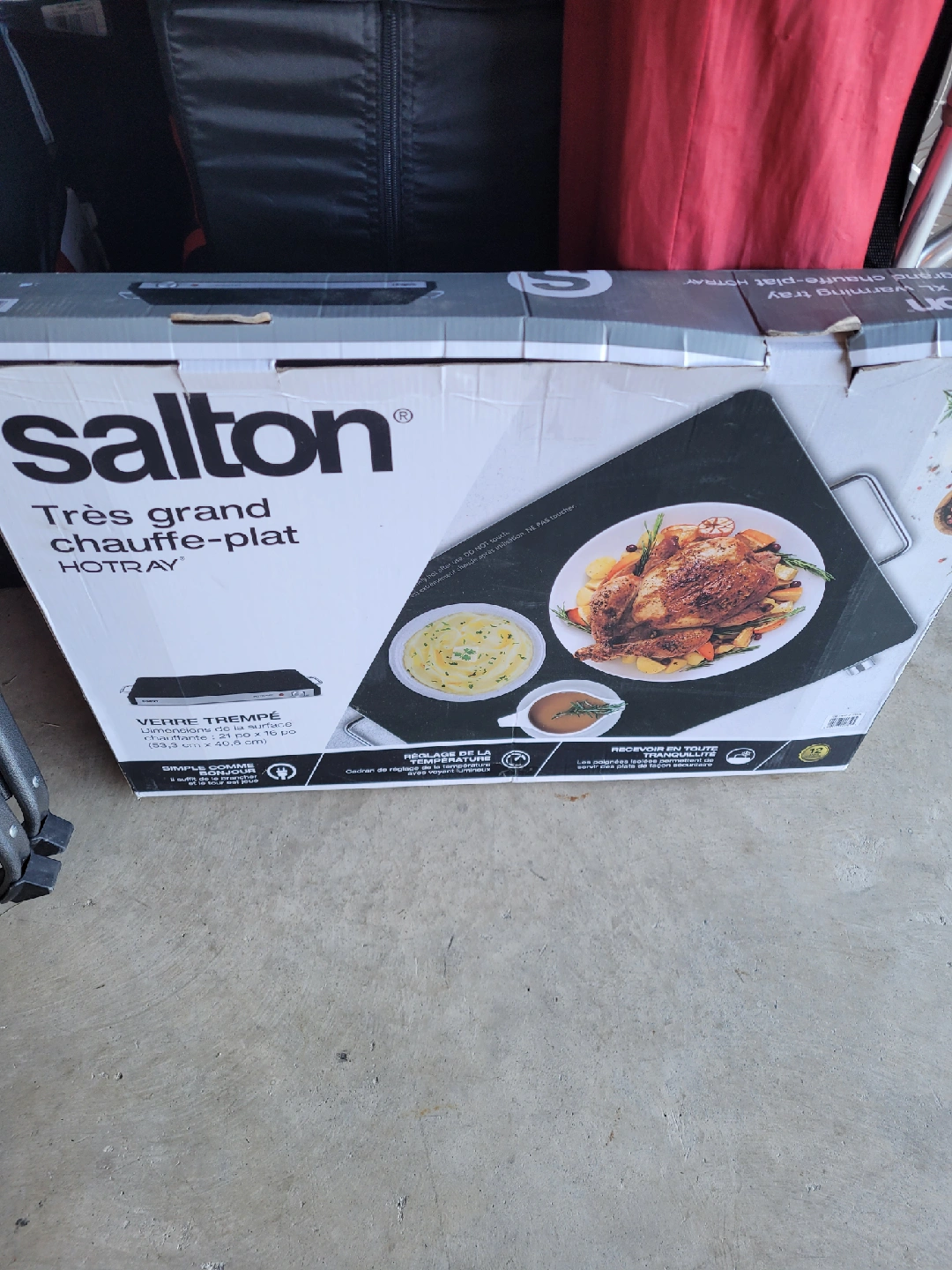 105Keep your dishes warm with this Salton HOTRAY XL warming tray! It's brand new and still in the box. Perfect for entertaining and keeping food at the right temperature. The warming surface is tempered glass.