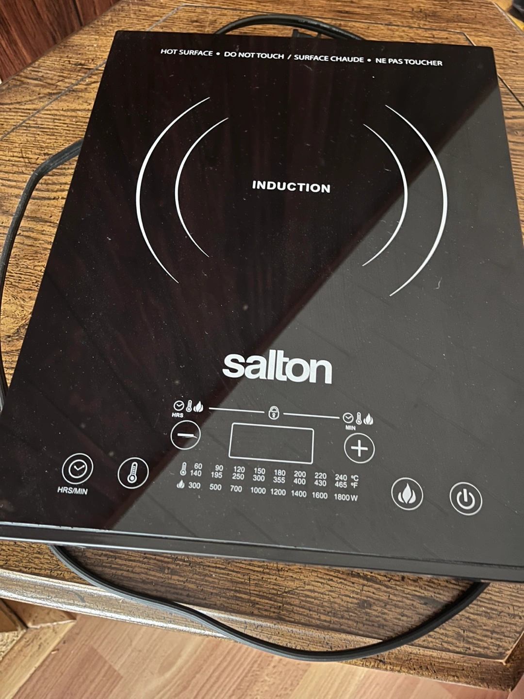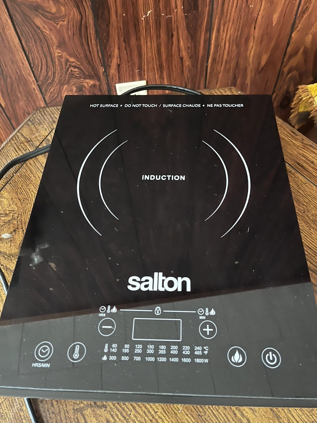 21Selling a Salton induction cooktop. It's in great condition and ready for a new home! Heats up quickly and is easy to clean. Perfect for small spaces or as an extra burner during the holidays