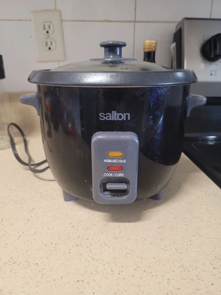 I'm selling a Salton rice cooker. It has a cook and warm setting. It has some signs of use.