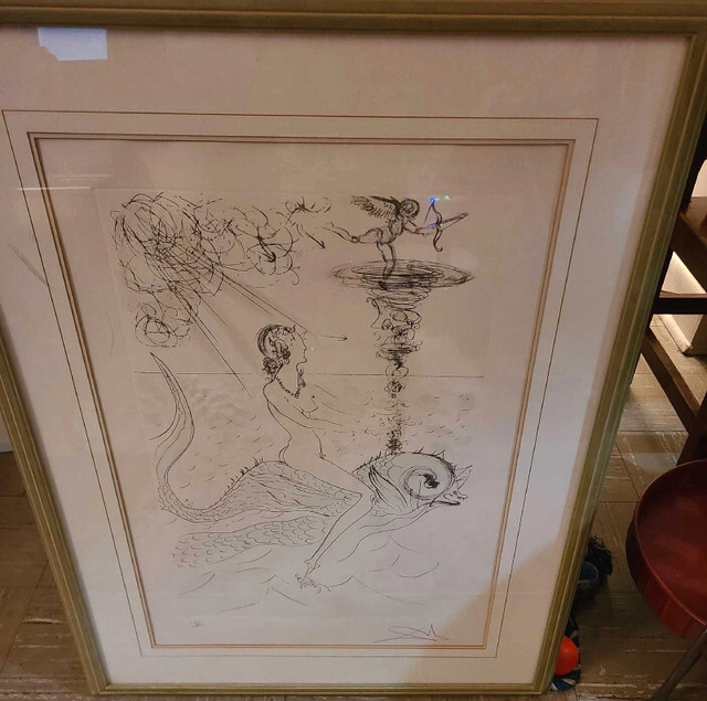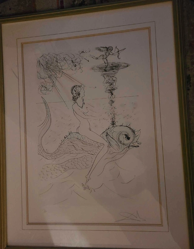 Dive into the surreal with this captivating Salvador Dali artwork! This piece features Dali's iconic style, blending dreamlike imagery with intricate detail. It's a must-have for any art lover looking to add a touch of the extraordinary to their collection. This piece is professionally framed, signed and numbered 68/150. If the ad is up, it's still available!