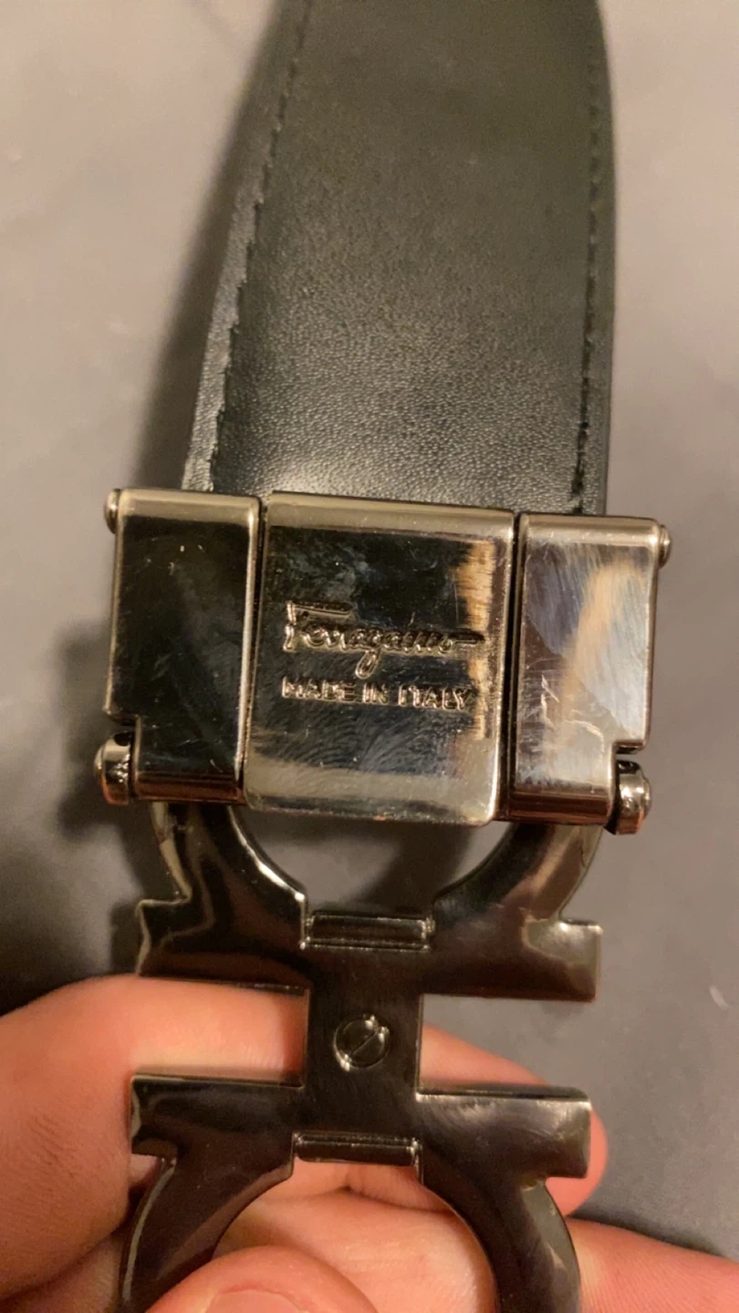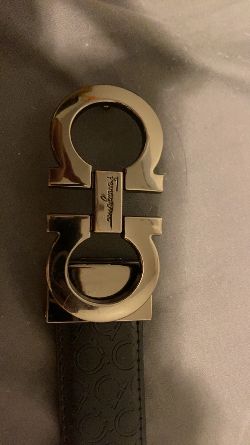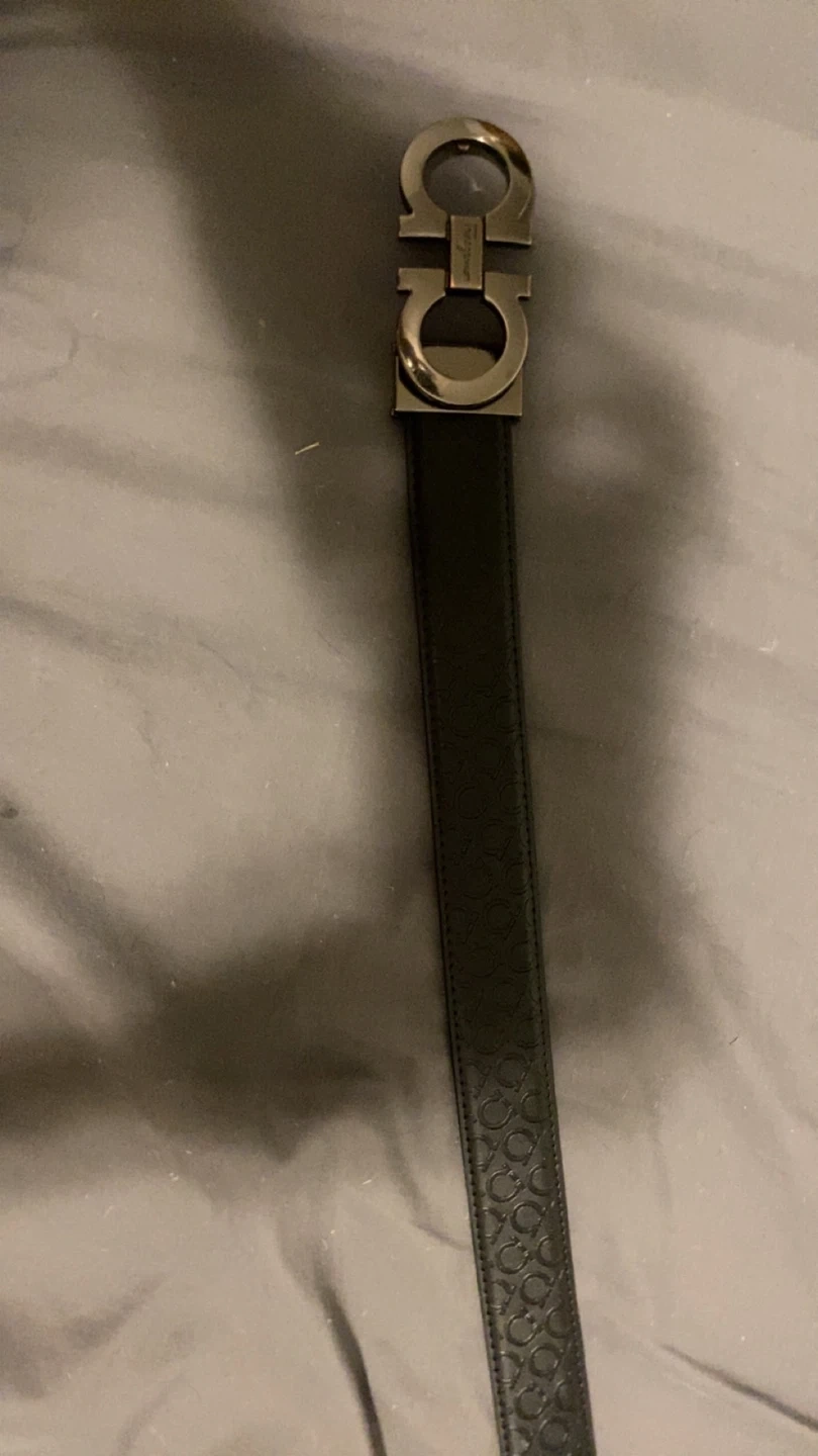 Lowest I will go is 85. Salvatore Ferragamo black leather belt. It features the iconic Ferragamo logo as the buckle. The belt is in great condition