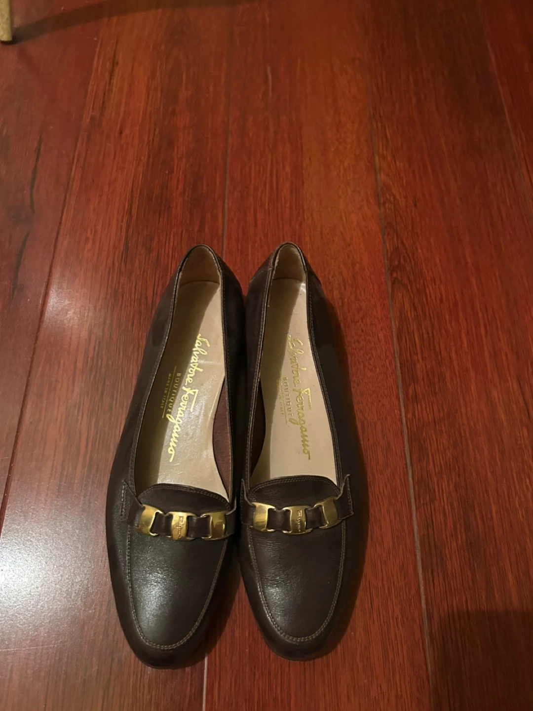 68Classic Salvatore Ferragamo loafers in a rich brown leather! These shoes feature the iconic gold-tone hardware detail. Perfect for adding a touch of elegance to any outfit. They are in great condition!