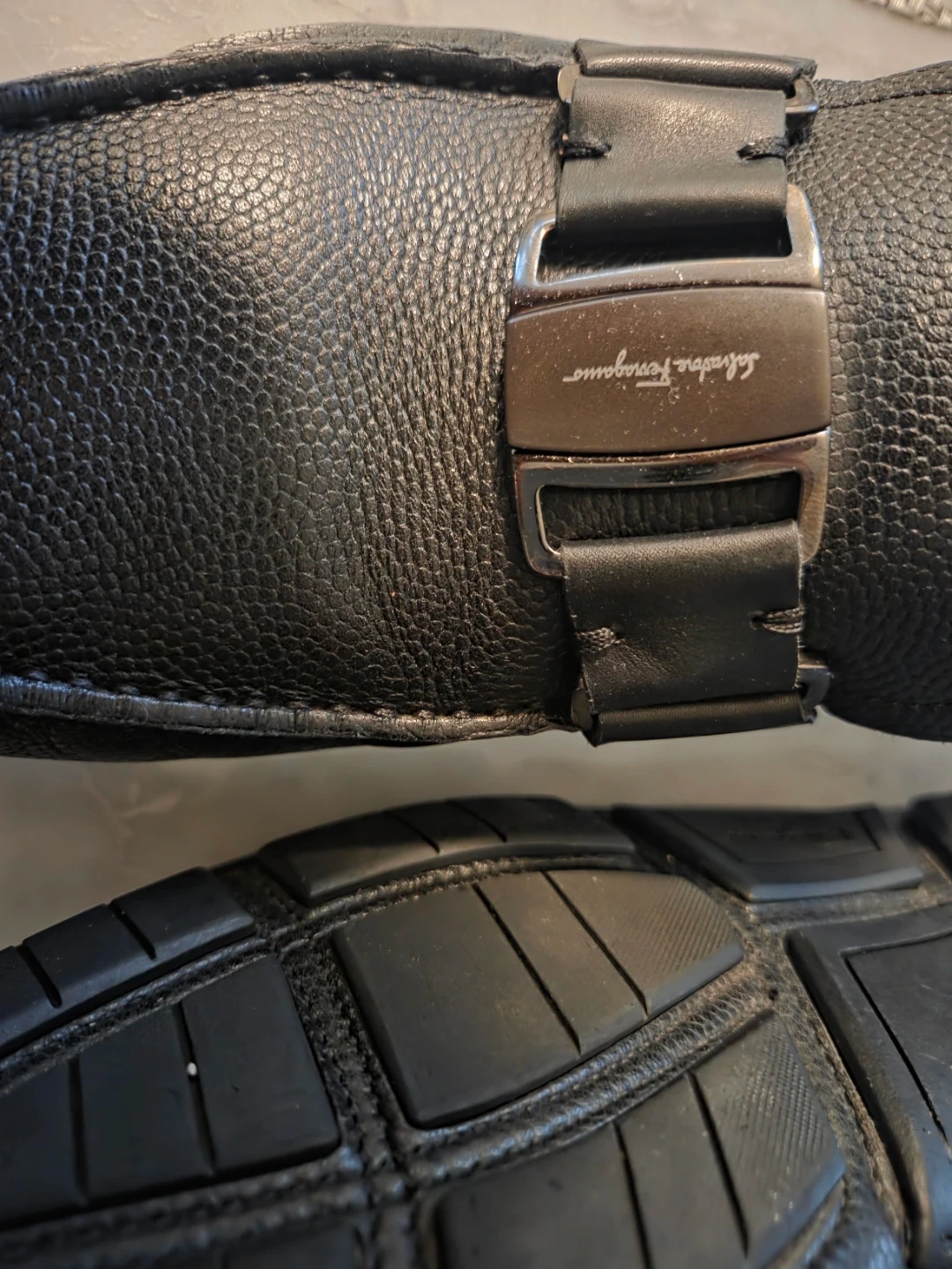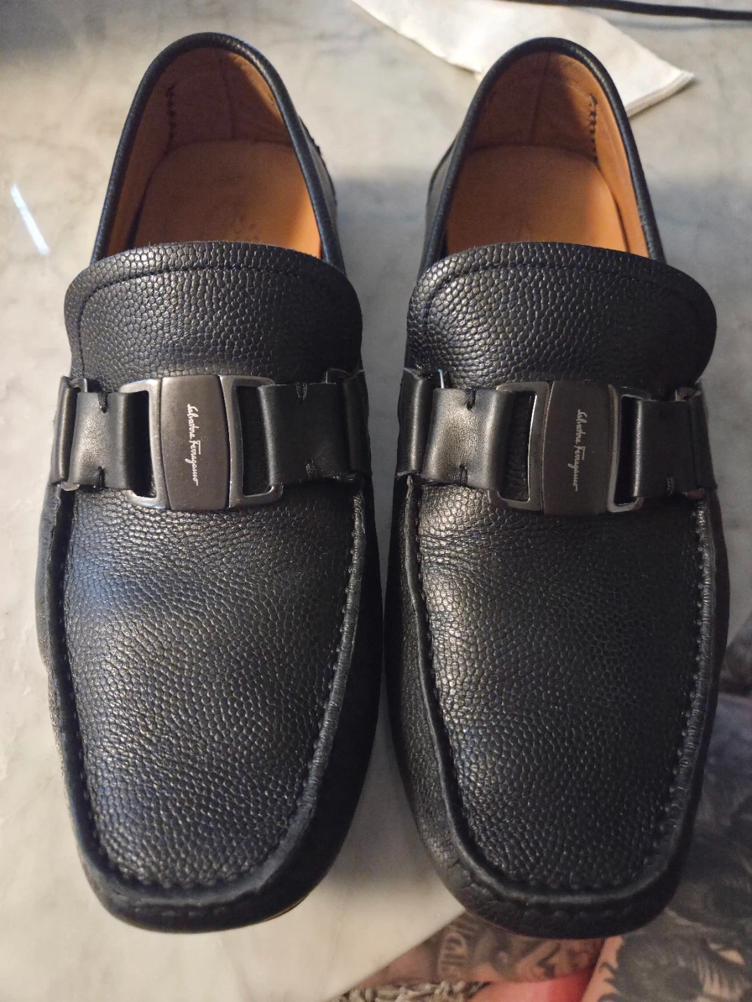 70Selling a pair of Salvatore Ferragamo loafers in black leather. The leather have been conditioned every few month in a manner suited for leather shoes to keep them soft and protected. They are in like new condition and ready for a new home. Size 6.5 have original box and cloth.