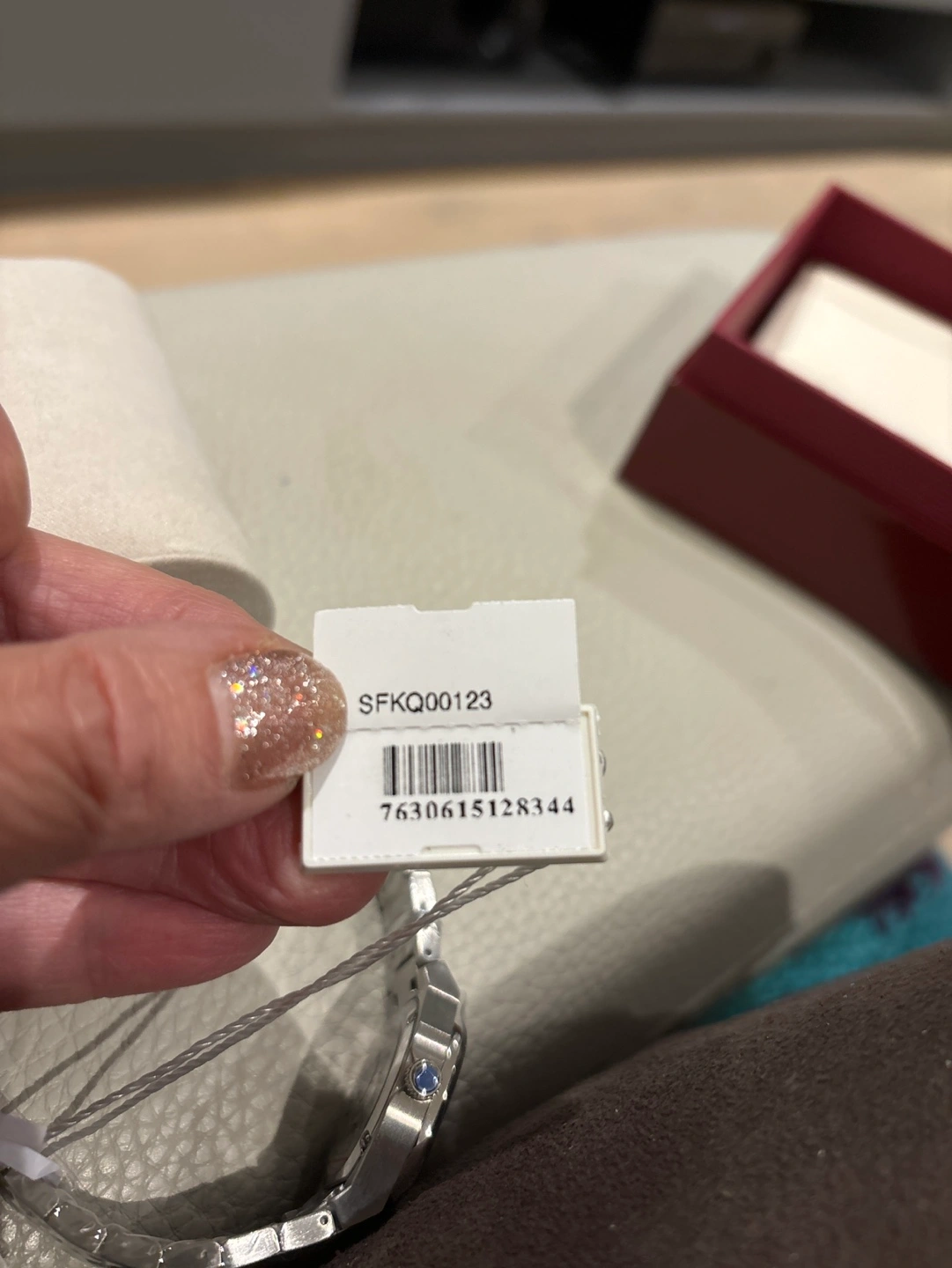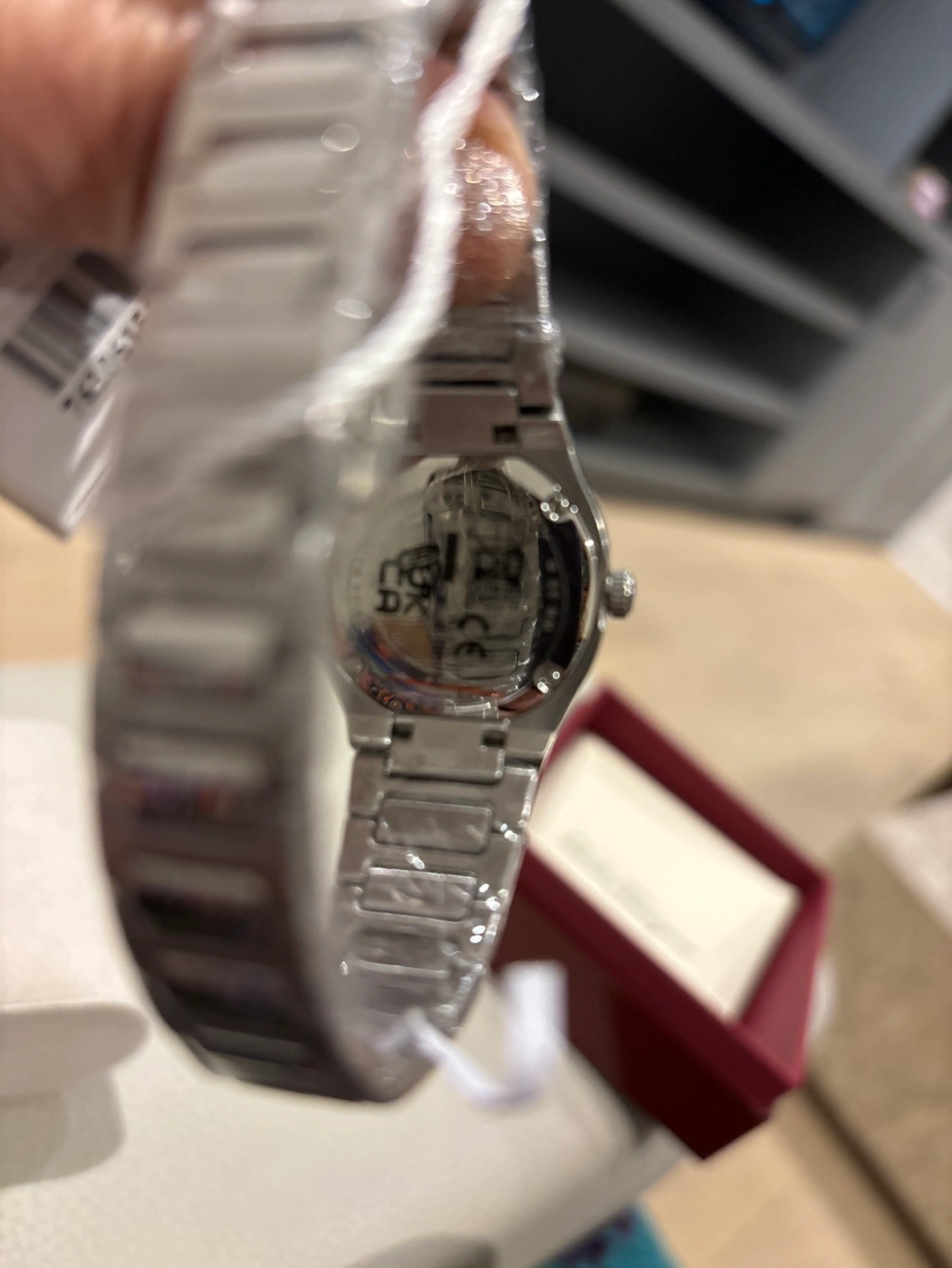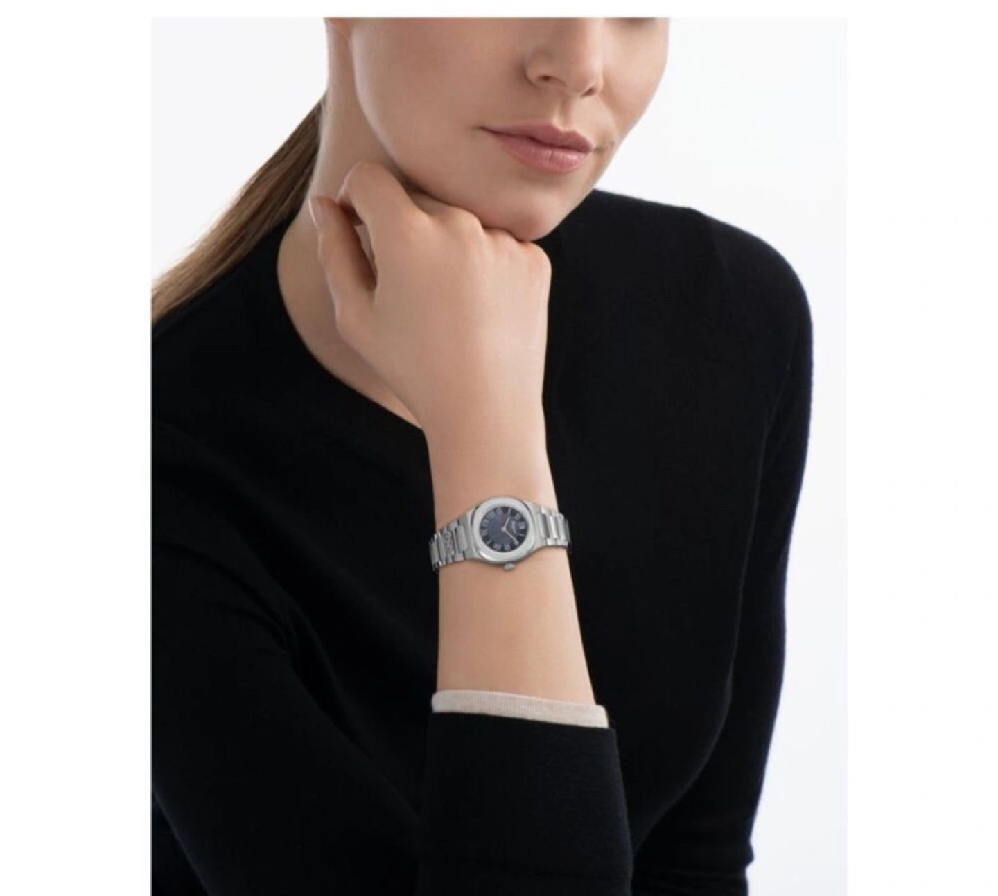 482Stainless steel watch with a black dial and a silver band Mother of Pearl dial. Comes with original box & Papers/ NEW/ Great for Christmas