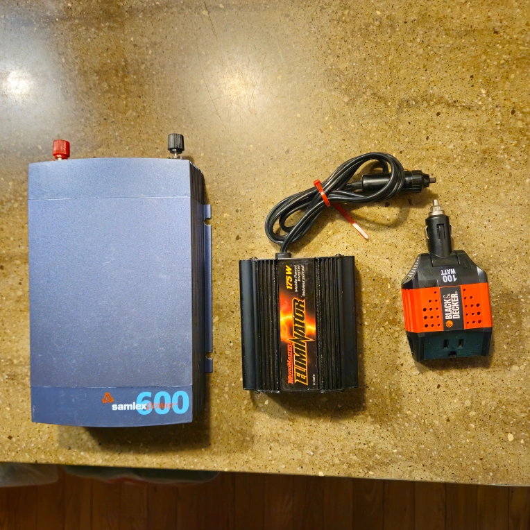 Selling a Samlex A-600 power inverter along with an Eliminator 75W power inverter. Also included is a Black & Decker 100 Watt power inverter. Great for converting power in your vehicle or during camping!