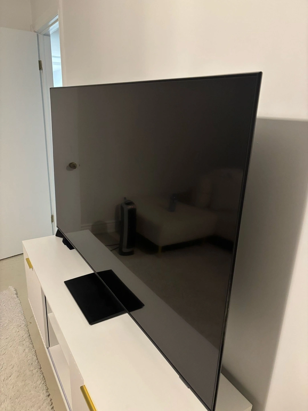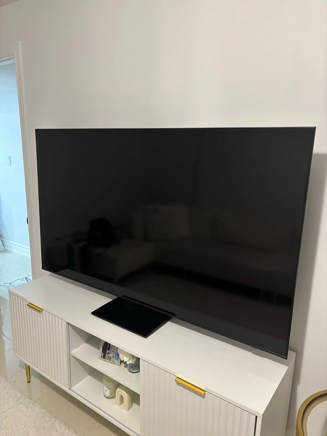 65Large screen television. Excellent picture quality. Sleek design. Great for home theatre setup. Includes stand. 120HZ REFRESH RATE; PC ON TV FEATURE * MOTION XCELERATOR TURBO+; TIZEN OS * ADAPTIVE SOUND; OTS LITE AUDIO ENHANCEMENTS * I-FI 5; AIRPLAY 2; BLUETOOTH BT4.2 * 1X HDMI 2.1; 3X HDMI 2.0; 2 X USE MEDIA PORTS