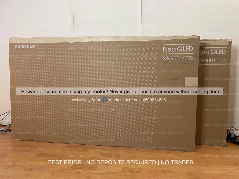 106READ FULL AD DETAILS BEFORE REPLYING! Selling several open box in new and like new condition state Samsung 65" QN65QN90DAFXZC 4K UHD HDR NEO QLED Tizen Mini LED Smart TV. Perfect working order, This NEO QLED is Samsung's top of the line flagship TV. 2024/25 Model. **YOU CAN TEST/ INSPECT IT PRIOR TO PURCHASE! NO DEPOSIT REQUIRED!!** Option 1 - $1125 ALL IN | FIRM Come with all remote/ power supply and box. No Legs Option 2 - $1180 ALL IN | FIRM Come with all accessories - legs/ stand/ remote/ power supply and OEM box. ALL 4 PORTS!!" for 4K 120hz Gaming for PS5 and Xbox X! https://www.rtings.com/tv/reviews/samsung/qn90d-qn90dd-qled Features * Latest NEO QLED Technology! * Latest MINI LED Technology! * Refresh Rate: 120hz (Native) * Inputs: 4 HDMI, 2 USB Media Ports * Bluetooth * Ultra Thin! PICK UP NEAR THE PNE GROUNDS in Vancouver, BC at my office. Delivery is available for a fee depends on your area.