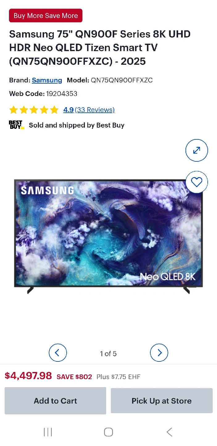 Brand new in box Samsung tv for sale. Never opened. Retail price is 4499.99. Save 1300 dollars. Dm for more details.