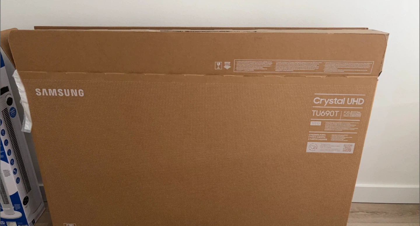 Selling a Samsung Crystal UHD TU690T 58-inch television along with white stand from Ikea. It's in excellent condition and comes with the original box!