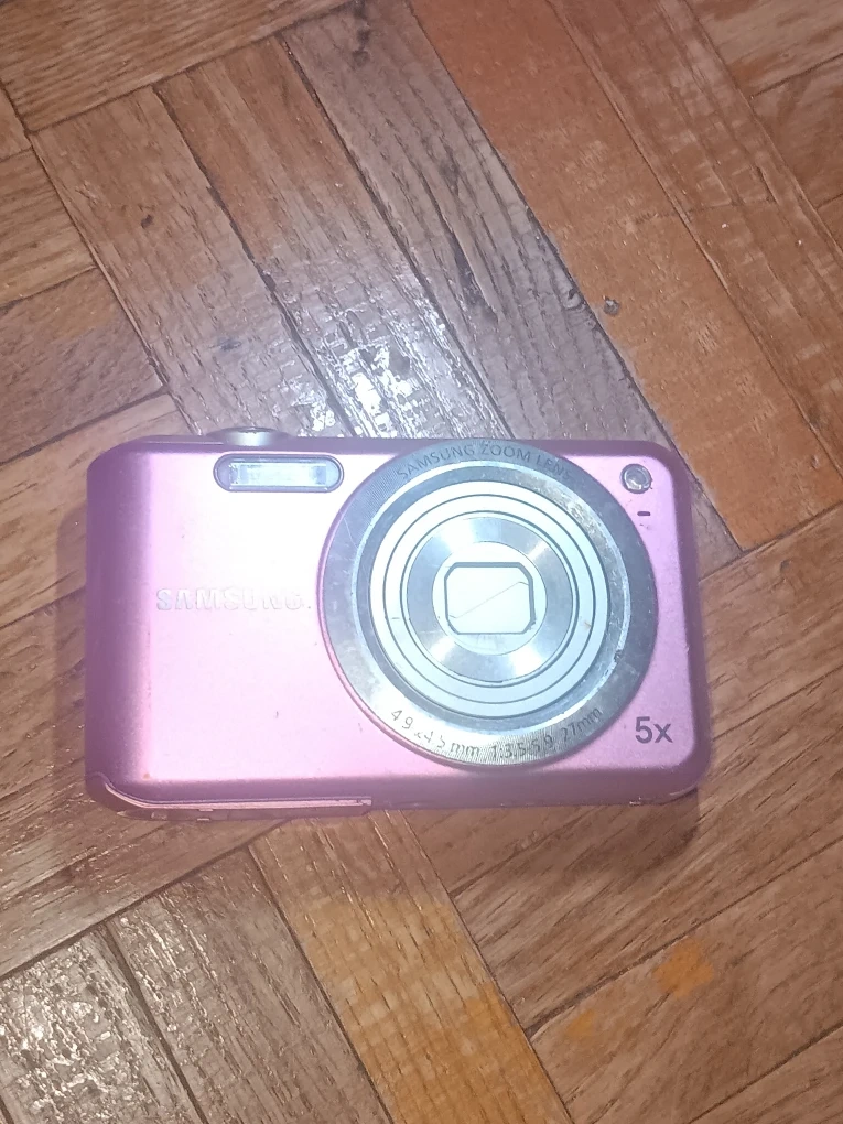 15Selling a pink Samsung digital camera. It's in used condition with some signs of wear, but still works perfectly. Great for someone looking for a simple point-and-shoot camera! as is