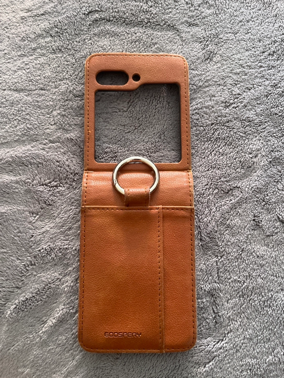 Brown leather phone case with a flip cover and a ring. Has a pocket on the back for cards. Selling for LESS FASTEST PICK-UP PREFERRED