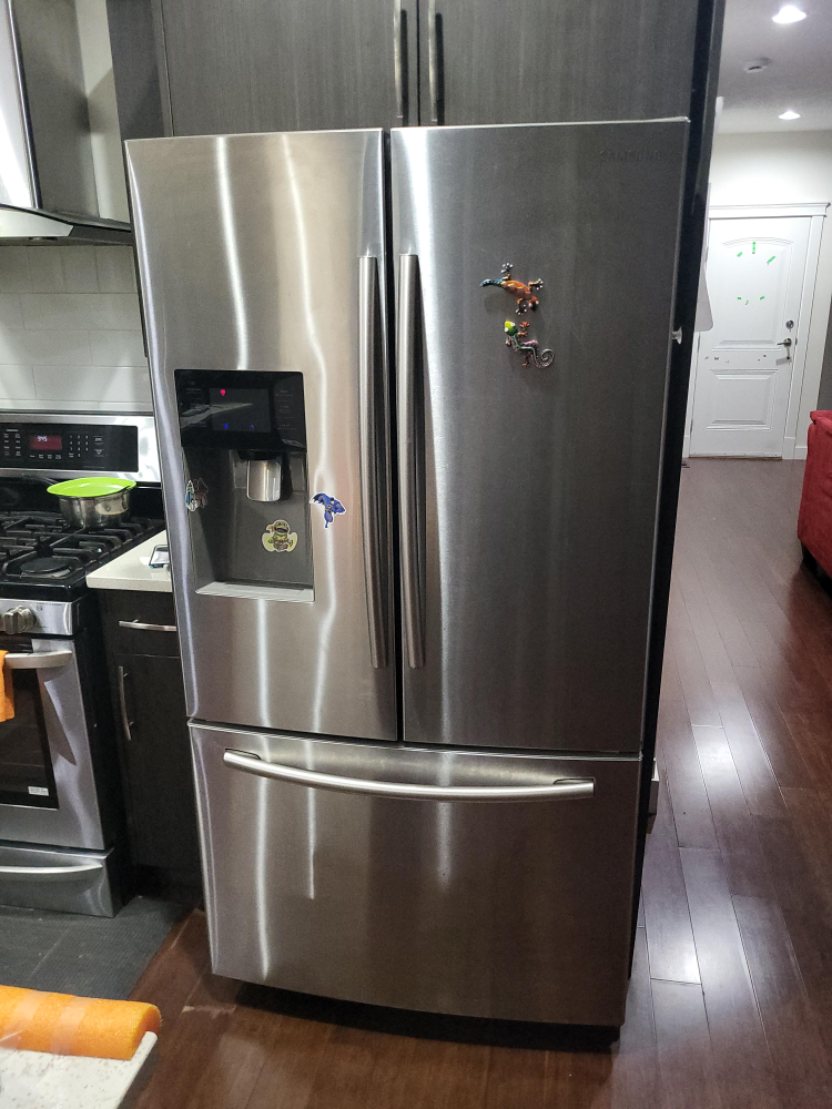 Selling a Samsung French door refrigerator in great condition! It features a water and ice dispenser, and the stainless steel finish looks great in any kitchen. Perfect for a family or anyone needing extra fridge space