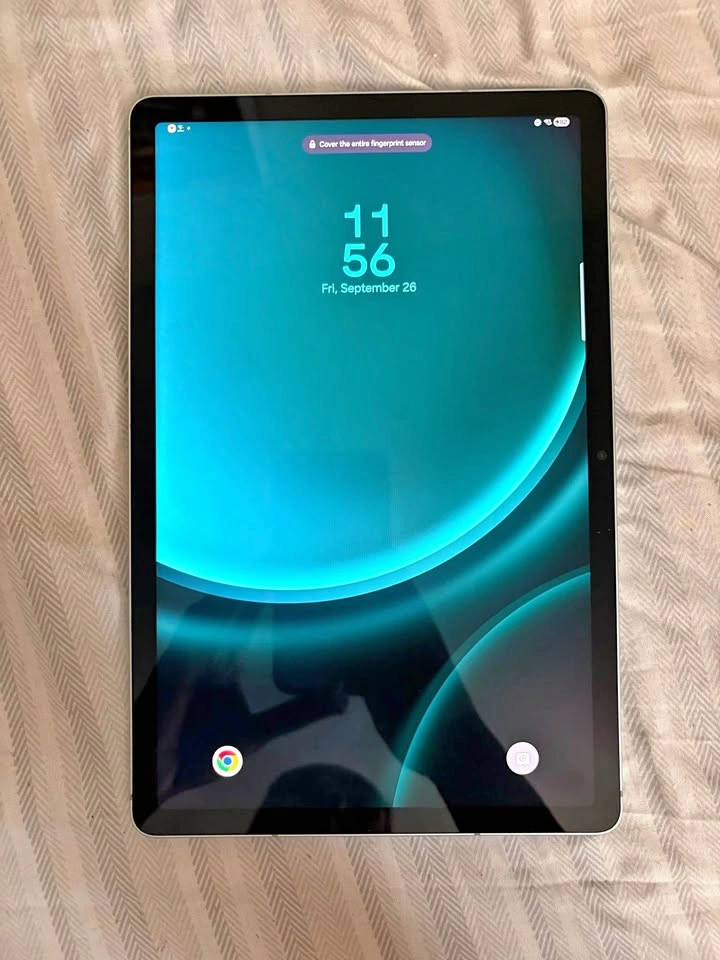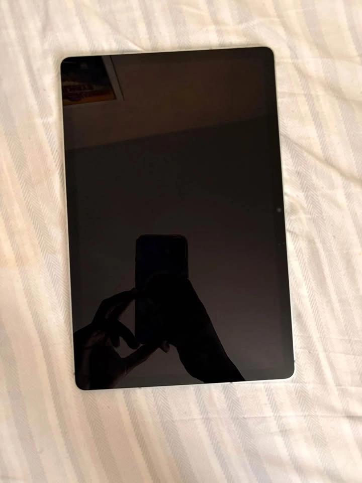 77Samsung Galaxy Tab S9 FE, 256 GB. Excellent working condition, always reliable. Two tiny hairline cracks on screen (barely noticeable, don’t affect touch or display at all). Battery is strong, body has no dents or scratches. Still has some of the original plastic on the sides. A case is included.