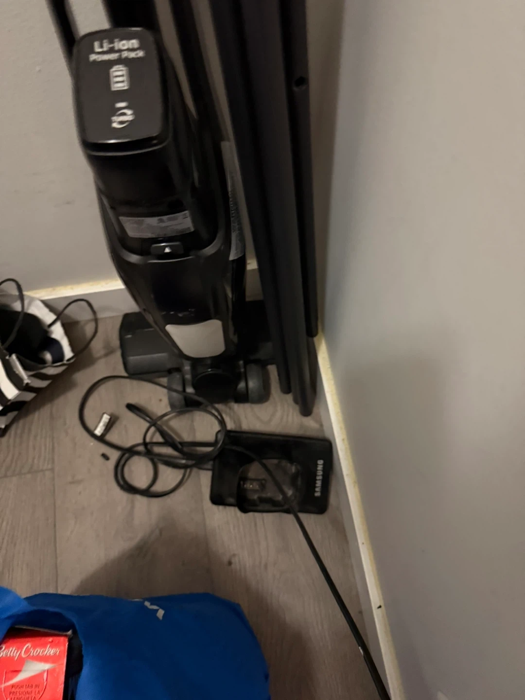 24Selling a Samsung Jet 75 cordless stick vacuum in black. It's in great condition and ready to keep your place clean! It comes with the Li-ion Power Pack and all the accessories you see in the pictures