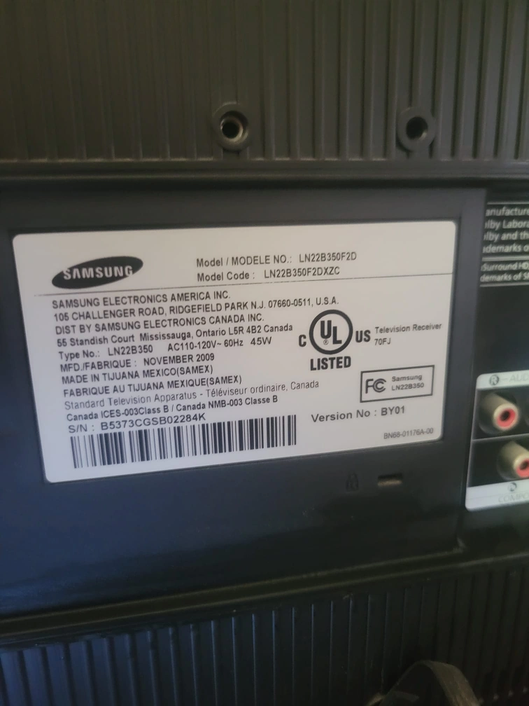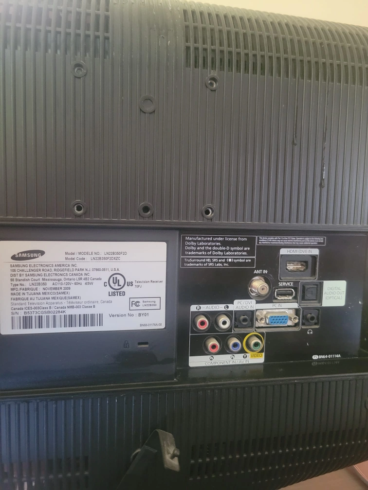 Selling a Samsung 22-inch TV, model number LN22B350F2D. It's in good working condition and would be great for a small space or as a secondary screen! It has HDMI and component inputs.