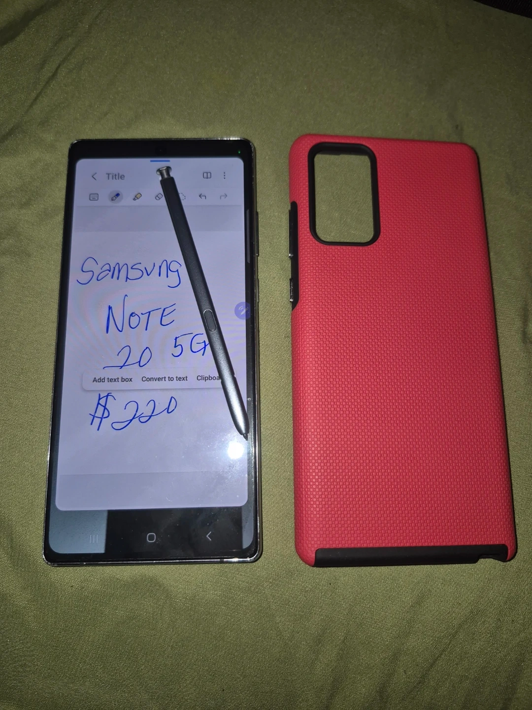 78Selling my Samsung Note 20 5G, comes with a case! It's in good condition and ready for a new owner. Asking $170 only today