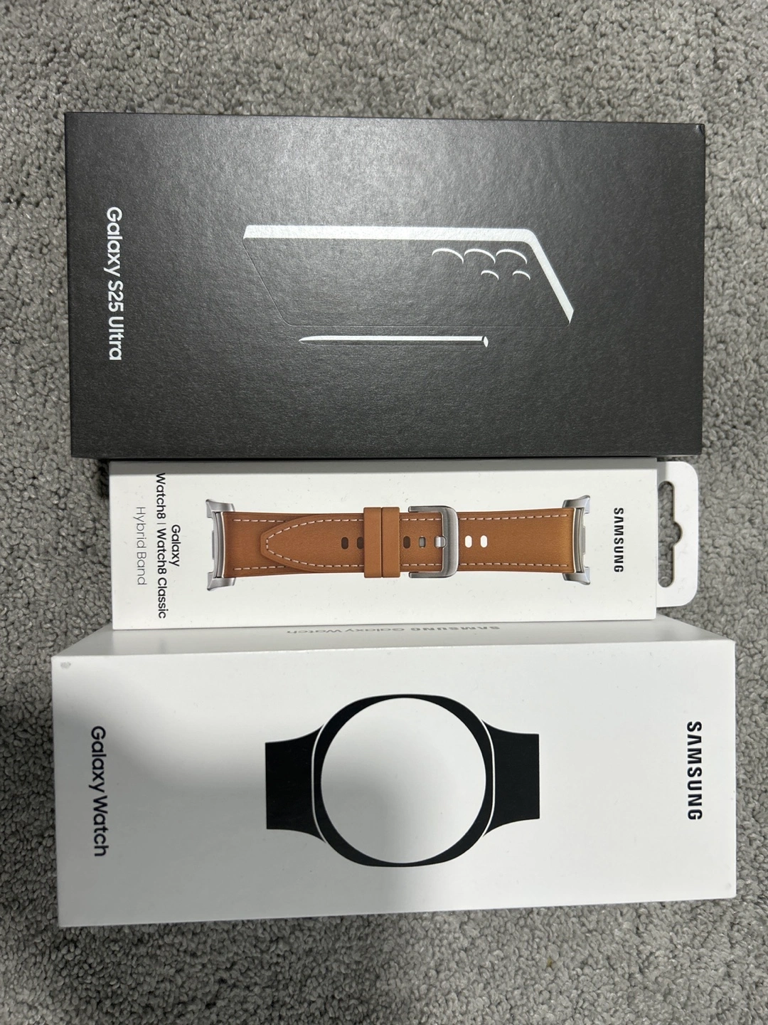 Samsung S25 Ultra and Samsung galaxy watch 8 classic.