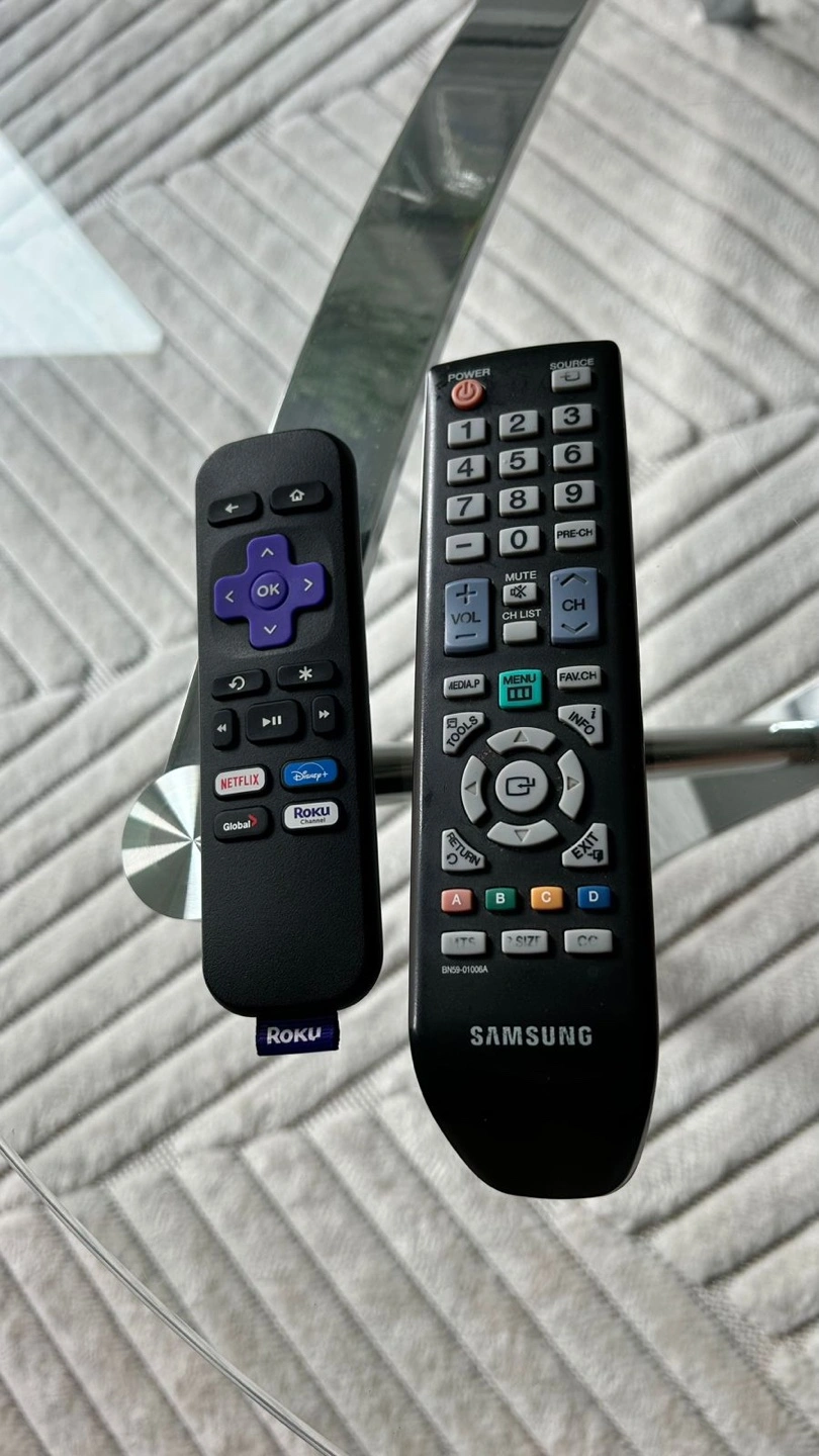 15TV Samsung 42 IN Includes Roku streaming device and two remote controls. Note: This is not a smart TV, but the included Roku allows you to connect to Wi-Fi and stream content. TV is fairly heavy — assistance may be needed for transport. HDMI cable and Roku power adapter (the wall plug, not the USB cable) are not included.
