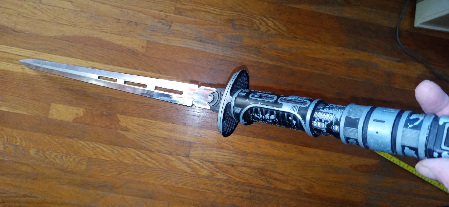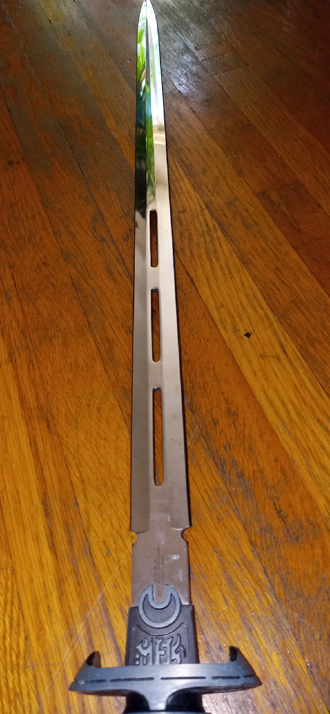 Selling a Samurai 3000 sword. It has a unique design and would make a great addition to any collection or as a display piece. No Sheif. United cutlery co. Made in Taiwan. Solid construction. For the experienced swordsman. Quality sword.
