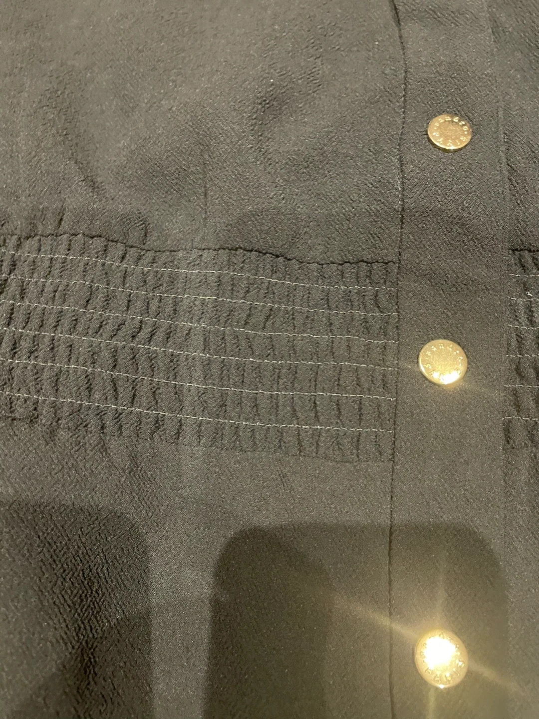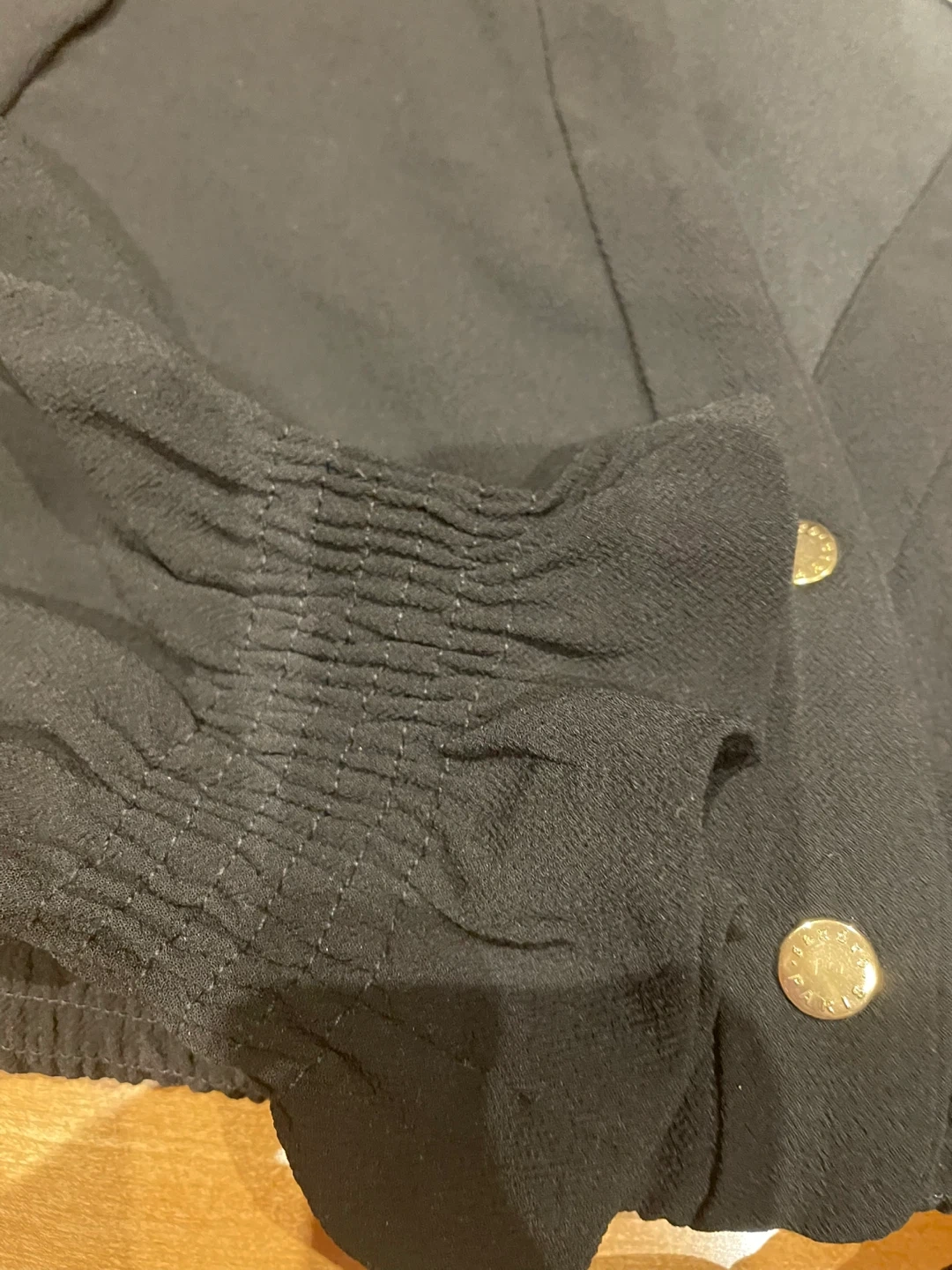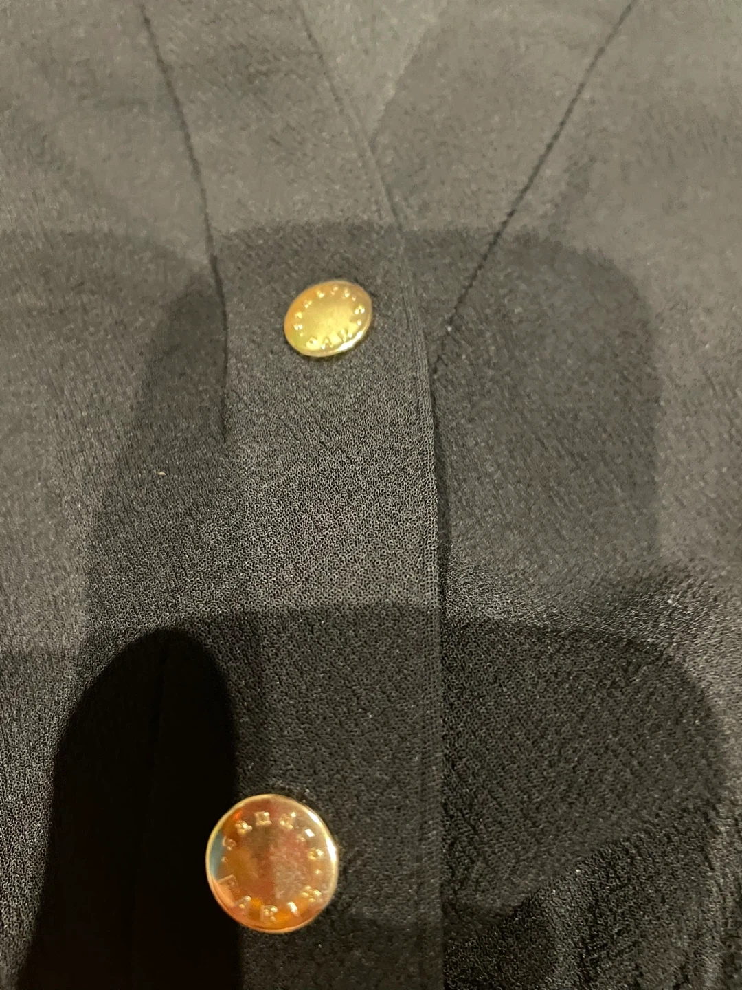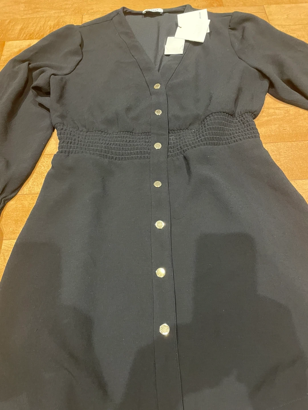 Selling a stylish Sandro black dress! It features a flattering V-neck and button-down design. The dress has a comfortable fit with a cinched waist. Perfect for any occasion!