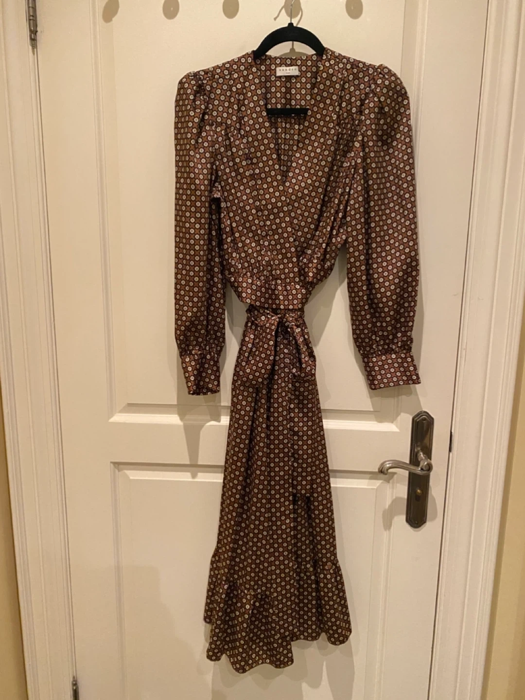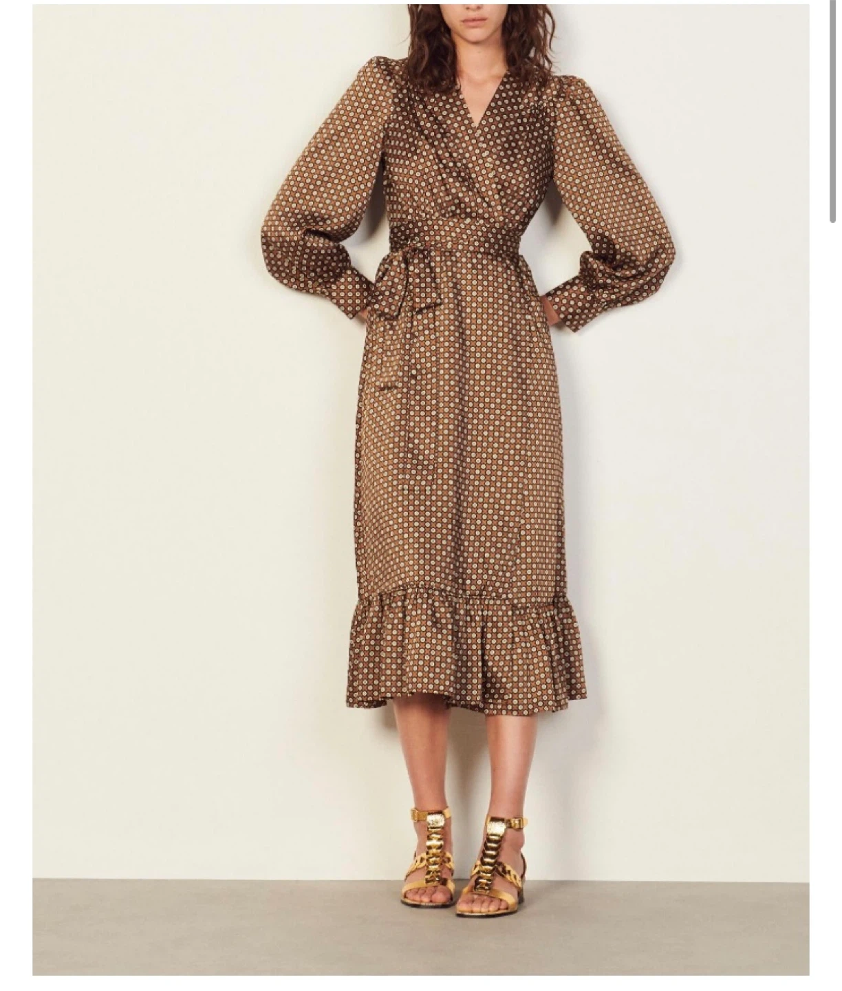 328Selling a lovely long flowing printed dress from Sandro! It's new and features a stylish wrap design with a tie at the waist. Perfect for any occasion! Original price : $415