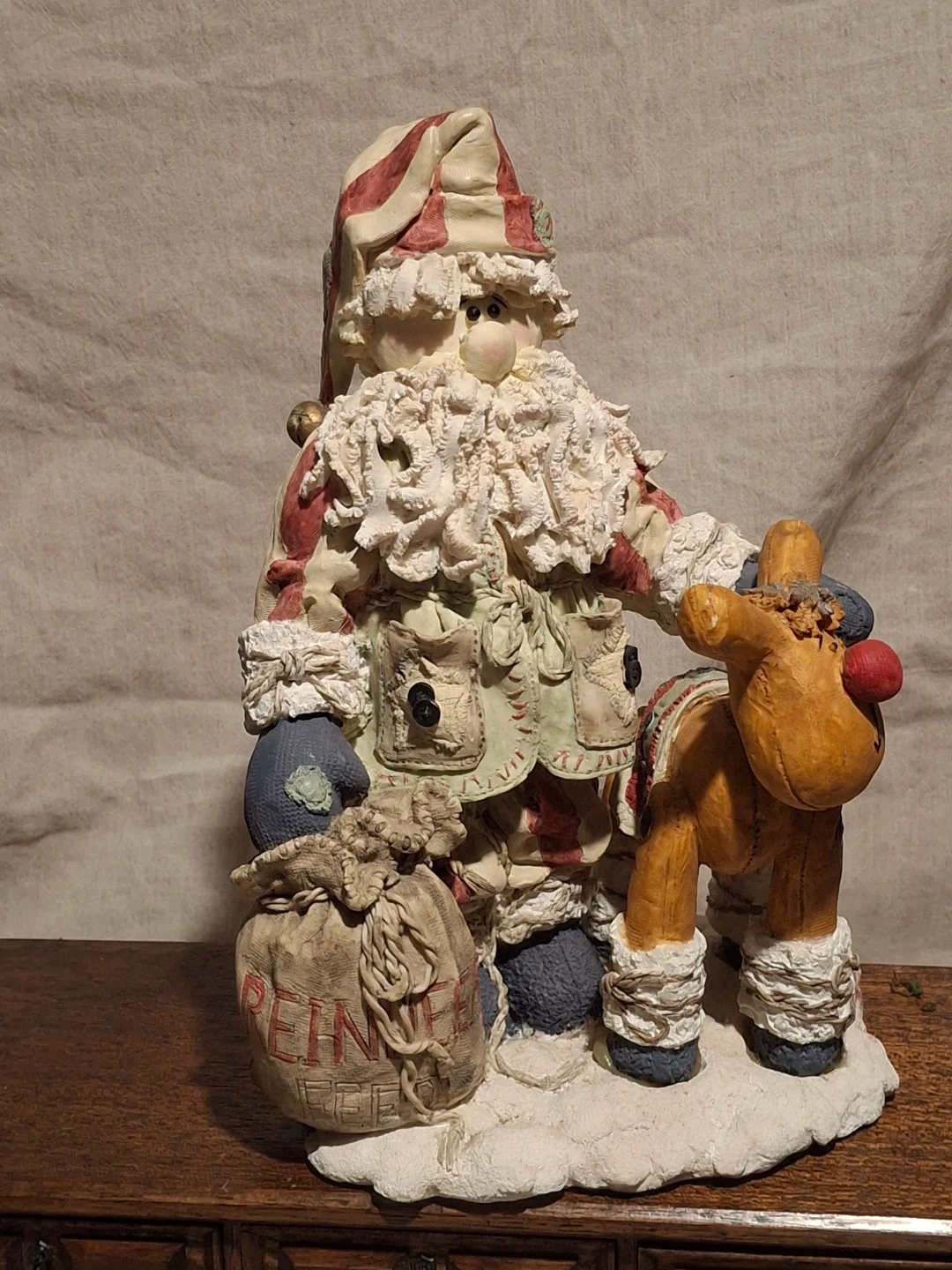 15This is a Santa Claus figurine with a reindeer. It is in good condition and would be a great addition to your Christmas decor