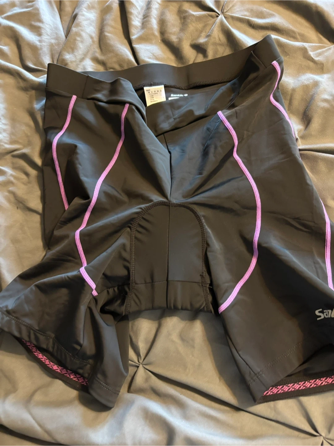 Selling a pair of Santic cycling shorts in great condition! They are black with purple accents and size 3XL (USA). Made of 80% polyamide and 20% elastane, perfect for a comfortable Ladies 3x