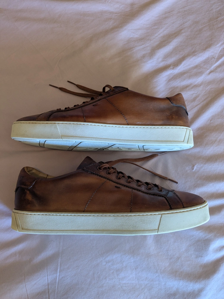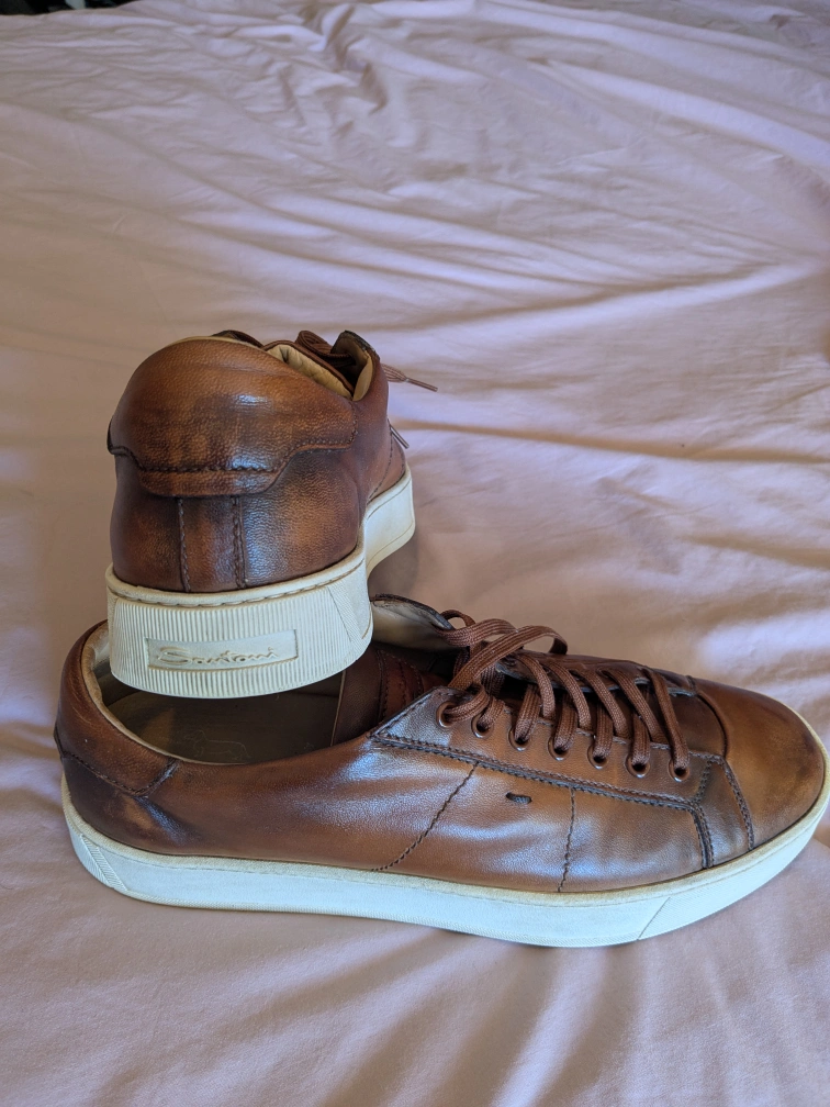 Santoni soft calf leather sneakers. Made in Italy. Size 10 but they run large, more like 11 or 11.5.