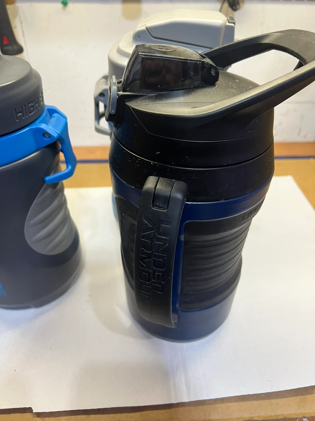 This High Sierra water bottle comes with a convenient handle for easy carrying. It's designed for active use and hydration on the go. The bottle features a secure lid and a durable build. 2 high sierra , 1 under armour 1.9Litres (64oz) each $10 each .